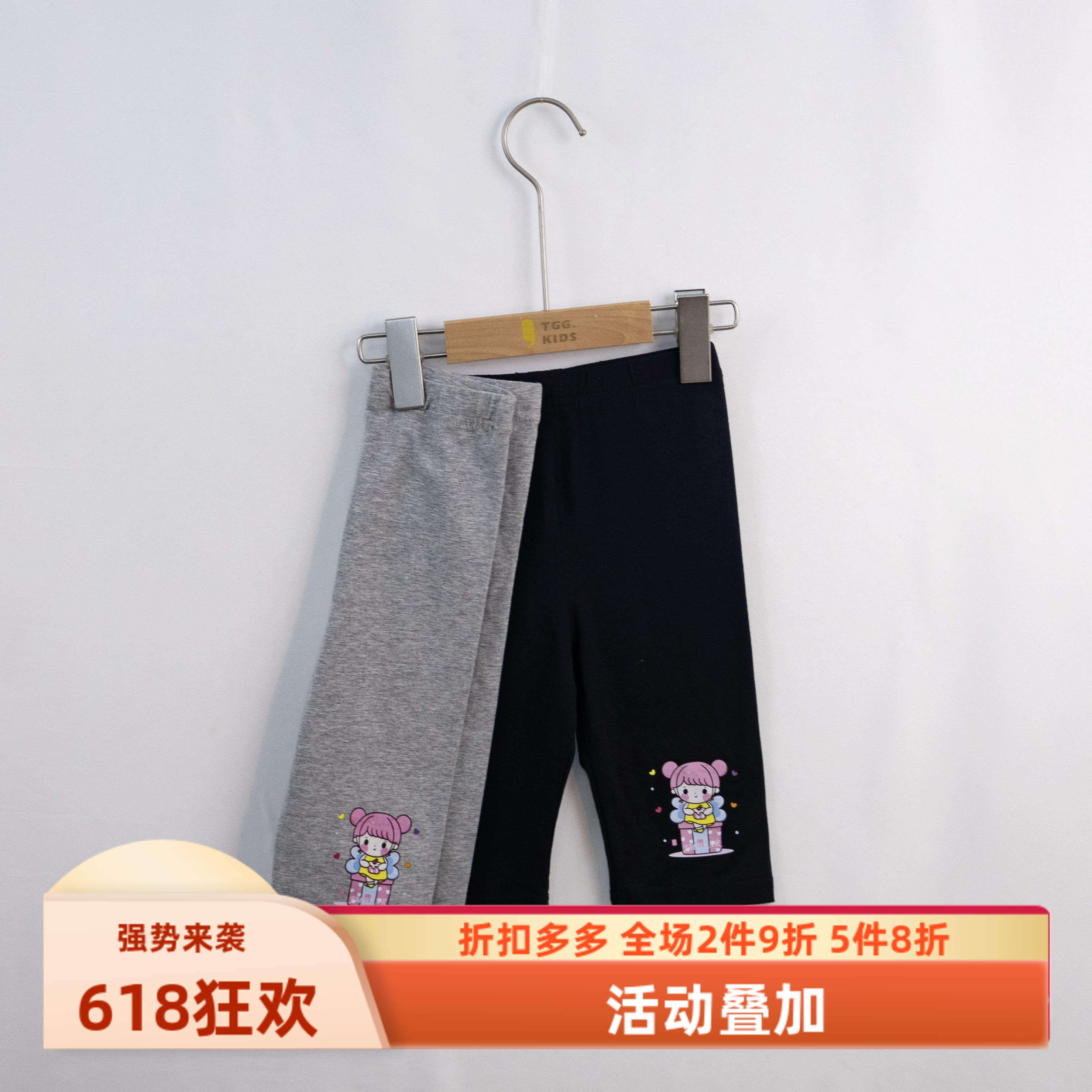 📚 杰米熊品牌童装90-130女童百搭弹力纯棉柔软速干打底短七分束裤