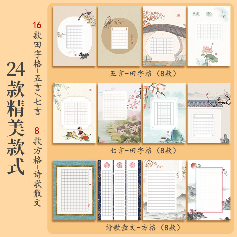 📚 六品堂硬笔书法作品纸练字专用纸小学生练字本A4比赛专用加厚米字格田字格方钢笔练习书法古诗词五言七言
