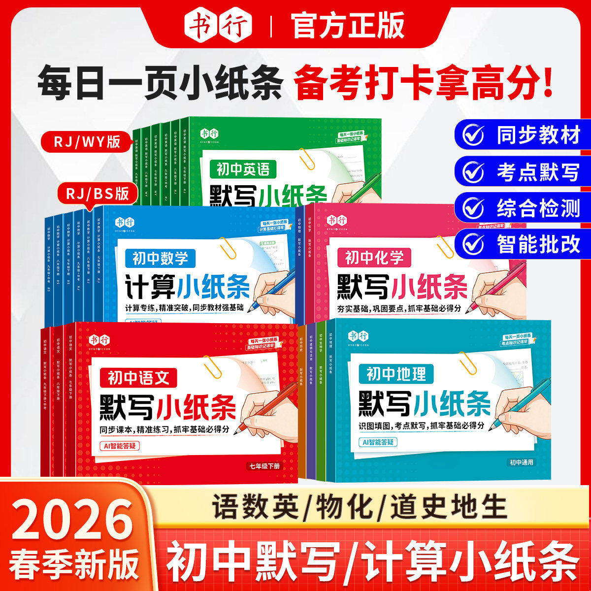 📚 2026新版书行初中默写小纸条初中语文数学英语七八九年级下册人教版同步默写训练册中考物理化学道法历史生物地理考点真题练习资料