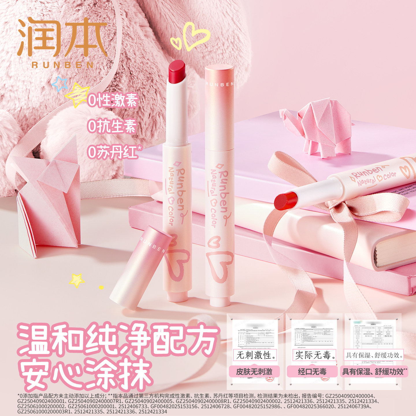 📚 润本天然淡彩润唇膏有色儿童口红变色唇膏小女孩专用宝宝滋润
