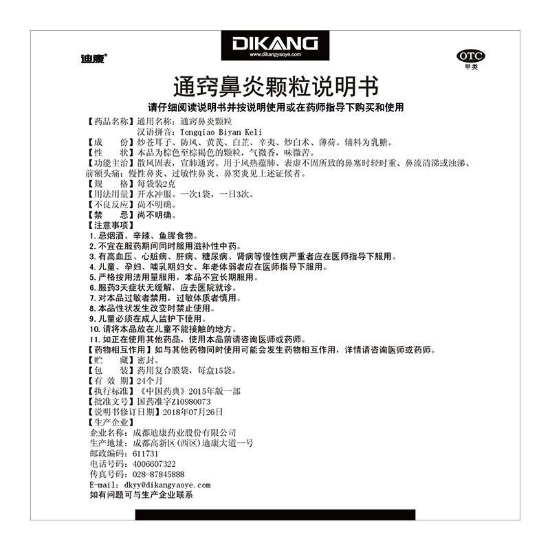 📚 包邮】迪康通窍鼻炎颗粒15袋/盒鼻塞流涕慢性过敏性鼻炎鼻窦炎9