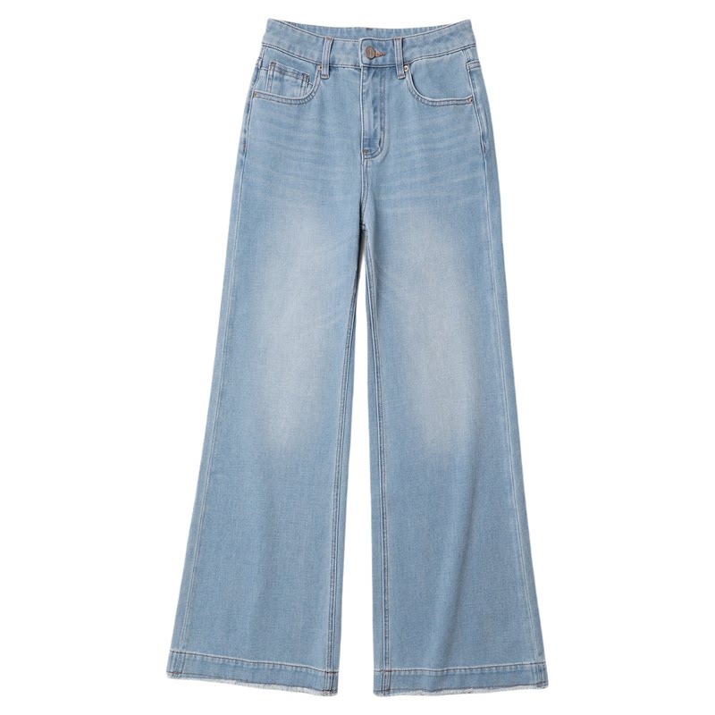 📚 TANG TOWN360°修饰腿型经典B入凉感软垂 显瘦微弹微喇毛边牛仔裤