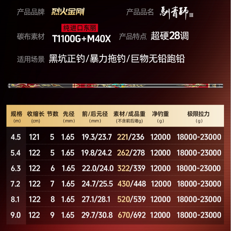 📚 鱼栖林烈火金刚驯青师三代大物竿驯三青鱼竿碳素超硬19偏28调性