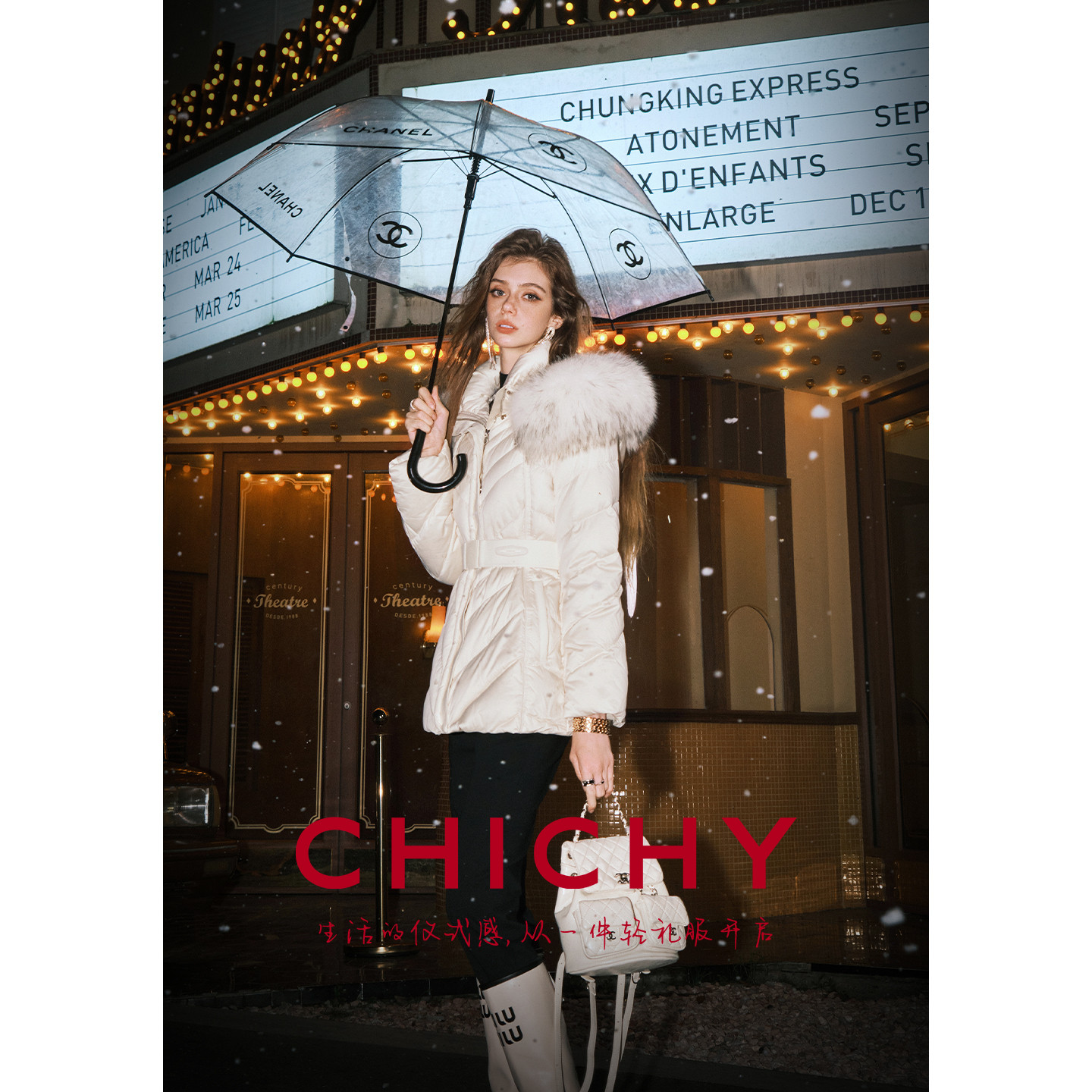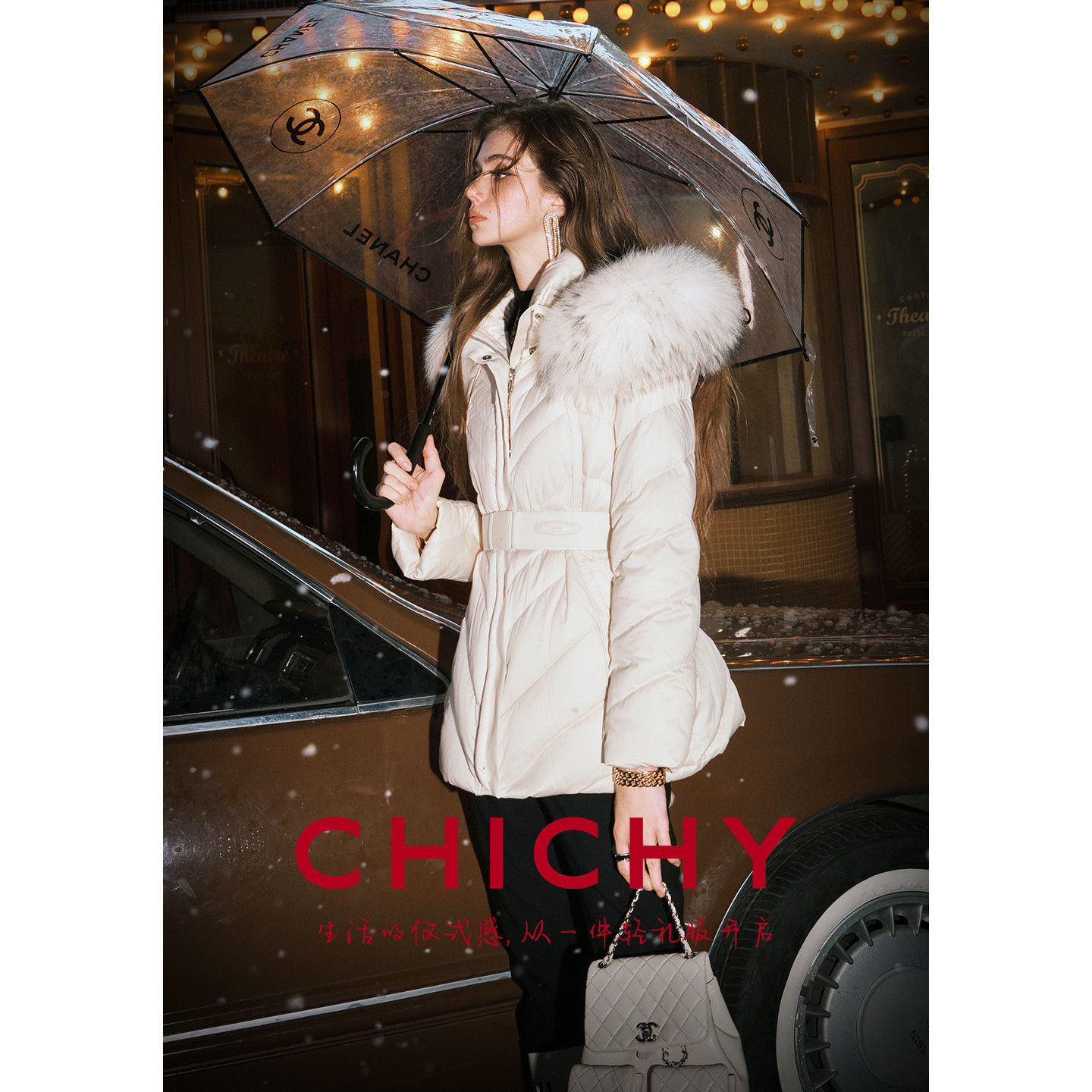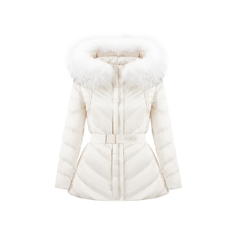 📚 【90%鹅绒】CHICHY轻薄收腰白色连帽羽绒服女25冬新款保暖短外套