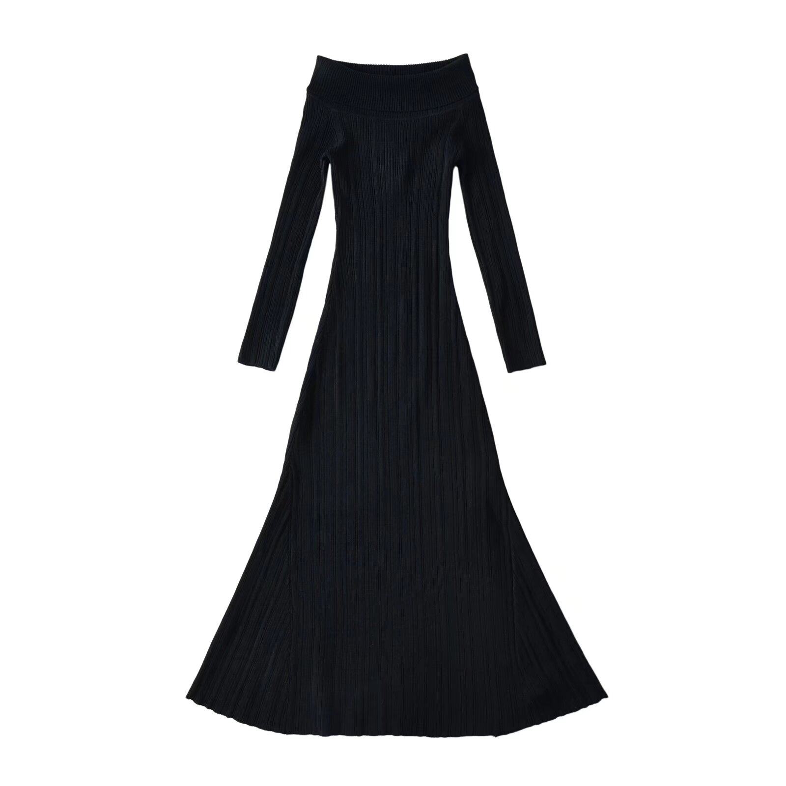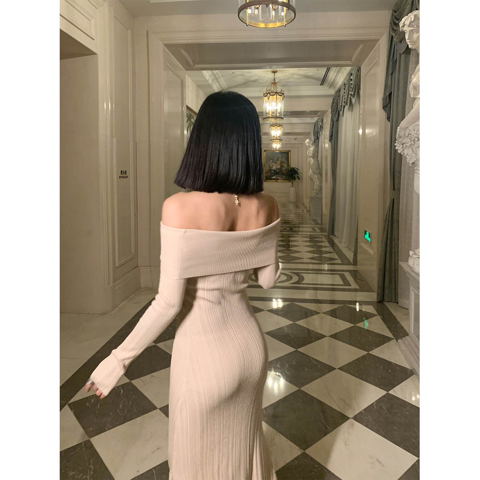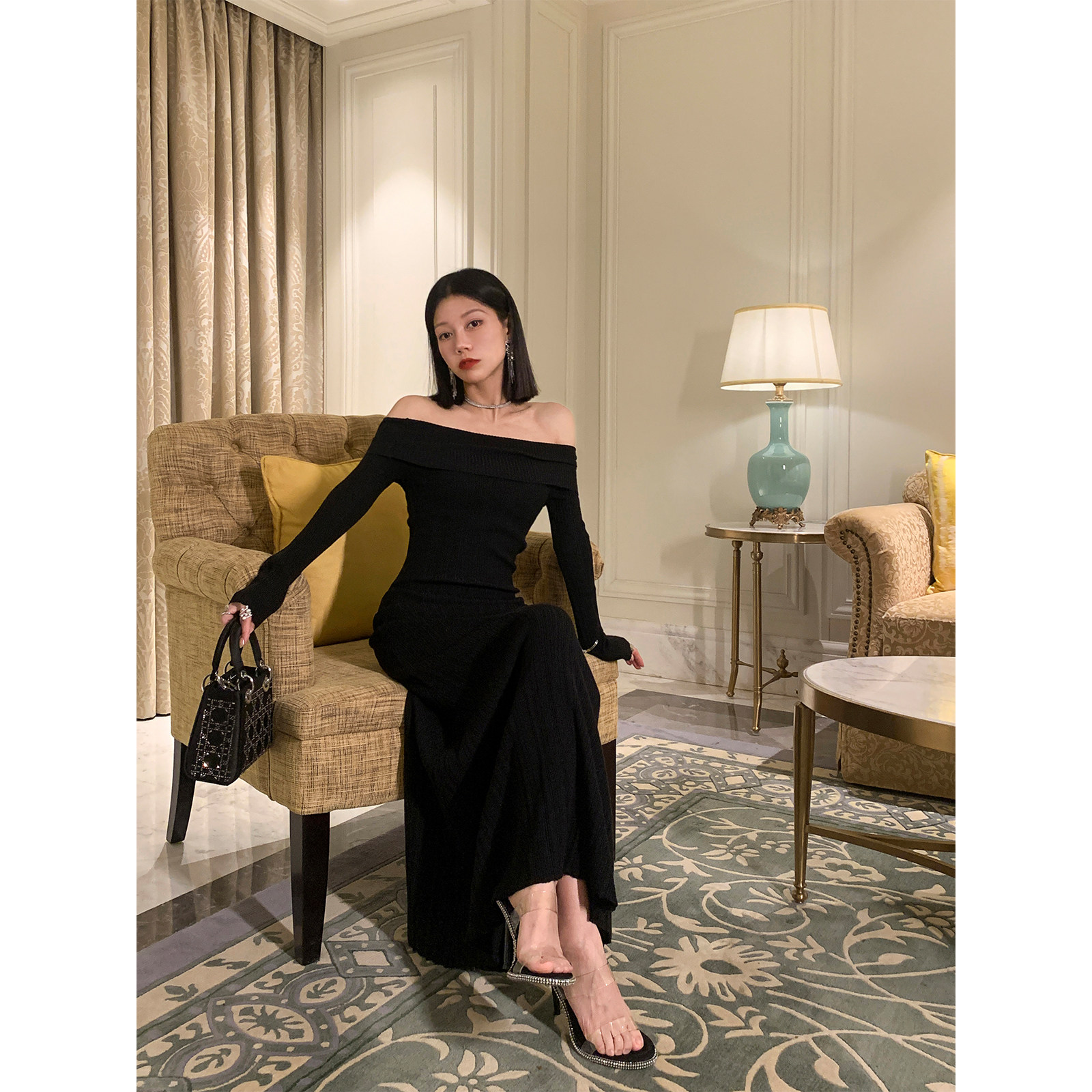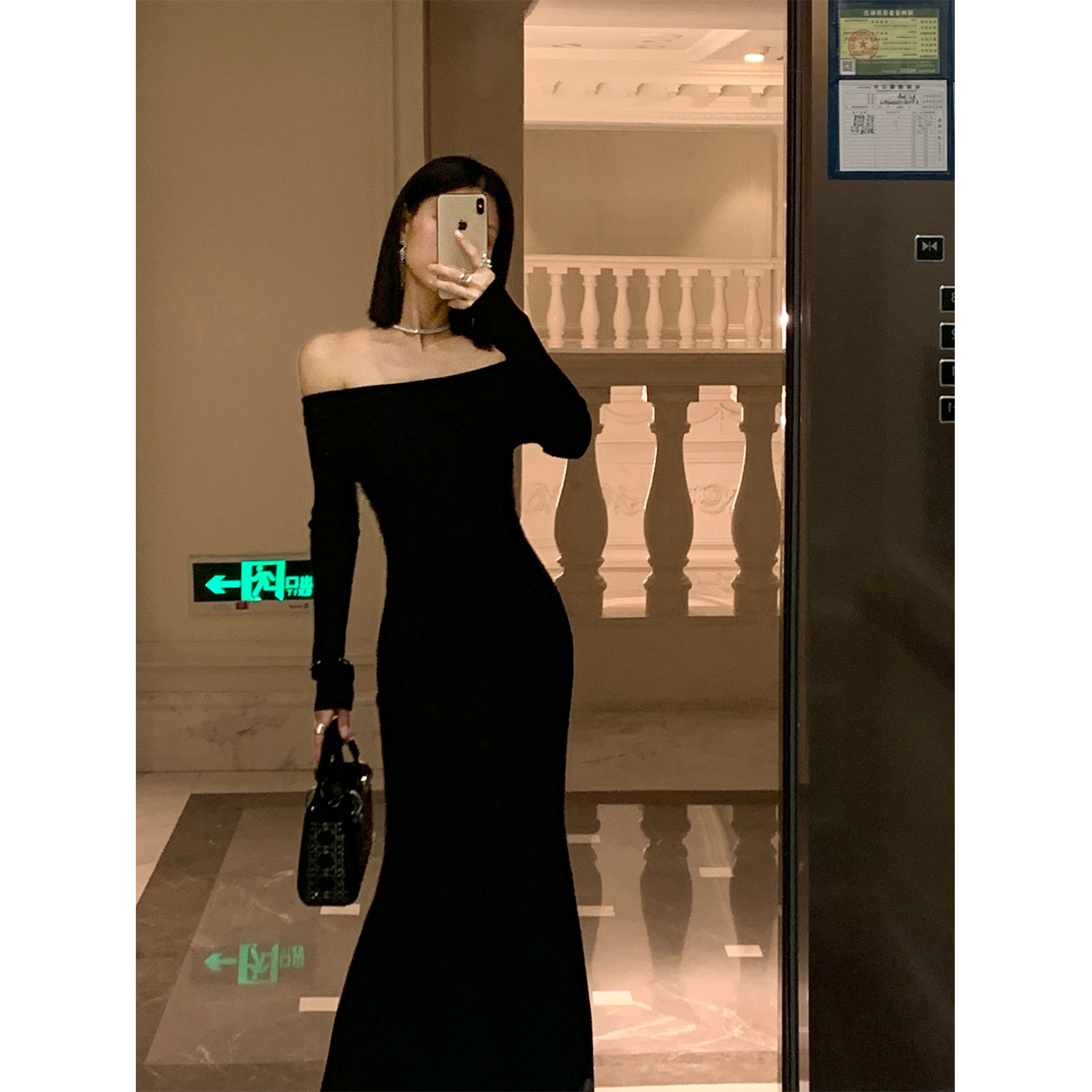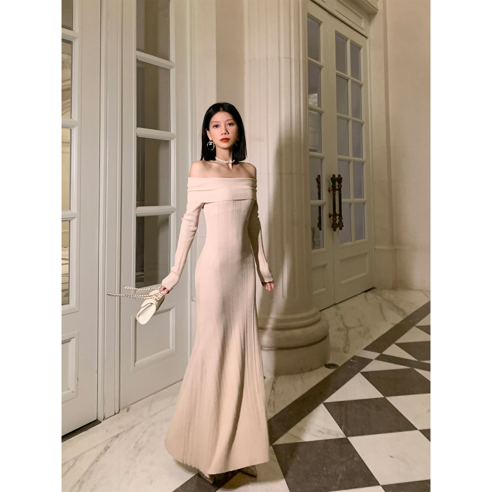 📚 一字肩连衣裙女春季修身打底露肩气质绝美针织抹胸鱼尾后妈包臀裙