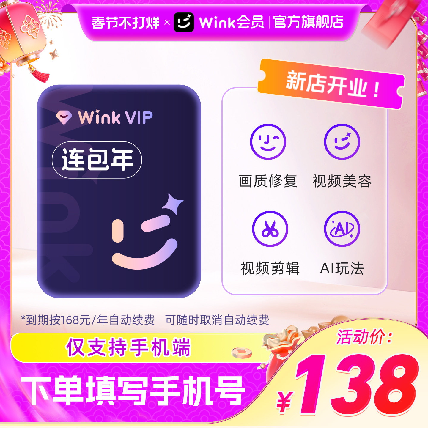 📚 【连续包年】Wink VIP会员年卡12个月 AI视频超清剪辑手机去水印