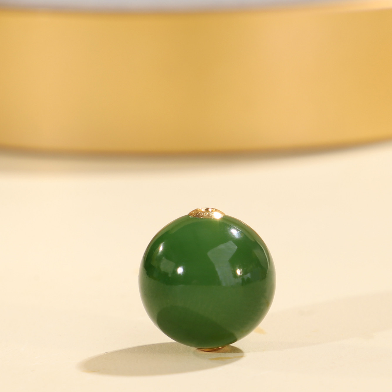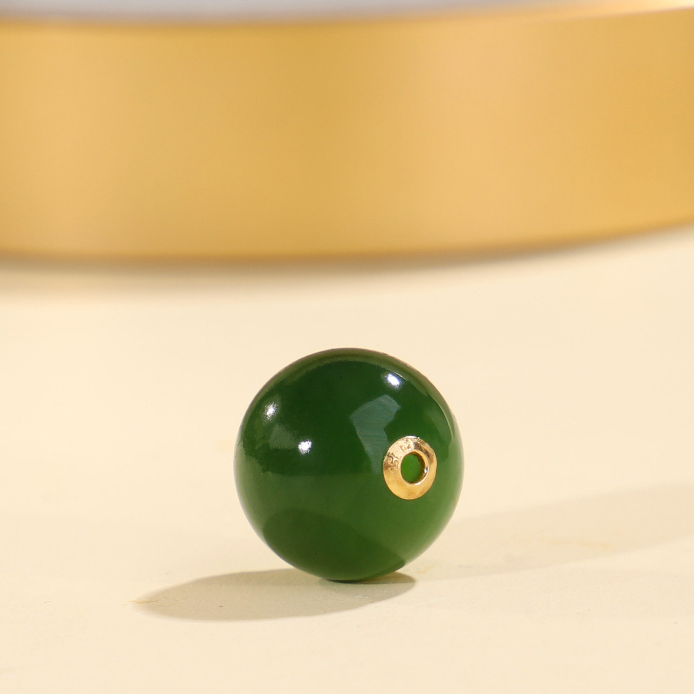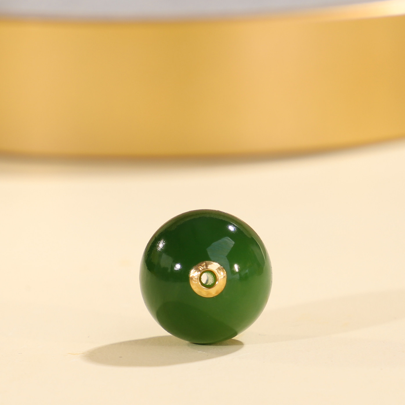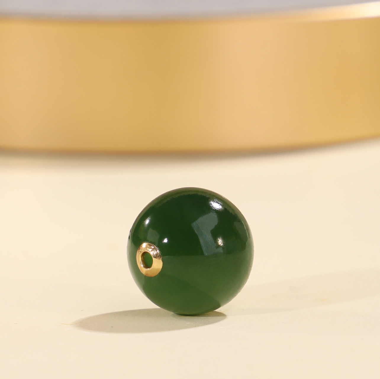 📚 帝廷家!正品天然俄料碧玉圆珠18K金贴片镶嵌孔道JKB1号13mm单珠