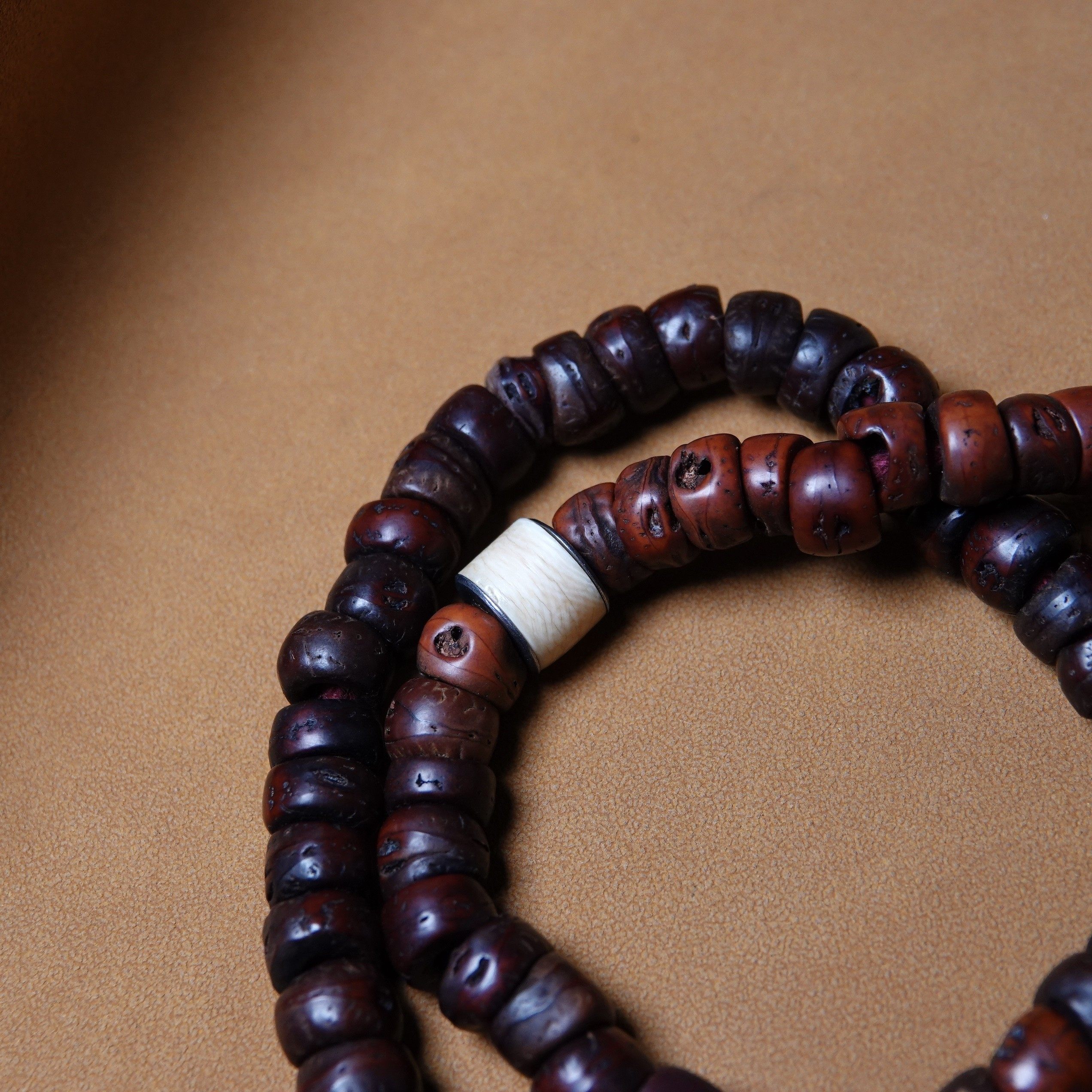📚 手工猛犸牙老高白双色铜镶嵌孔道桶珠玛尼珠顶珠配珠念珠手串百搭