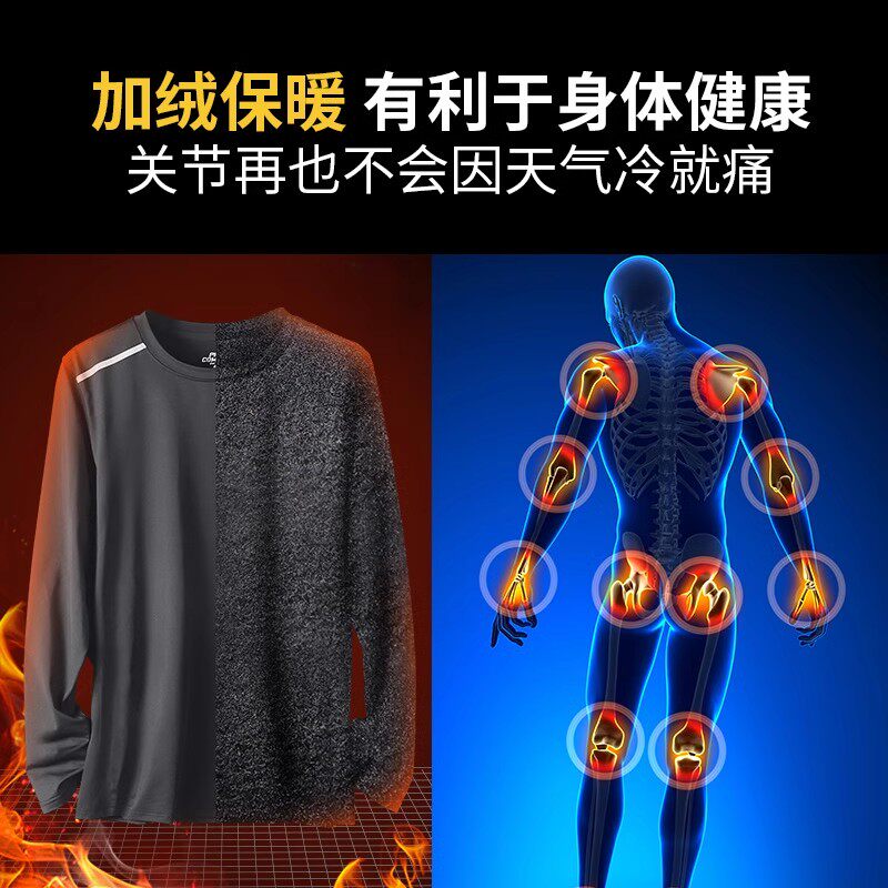 📚 冬季加绒跑步速干衣长袖t恤男保暖训练健身新款运动登山衣服上衣