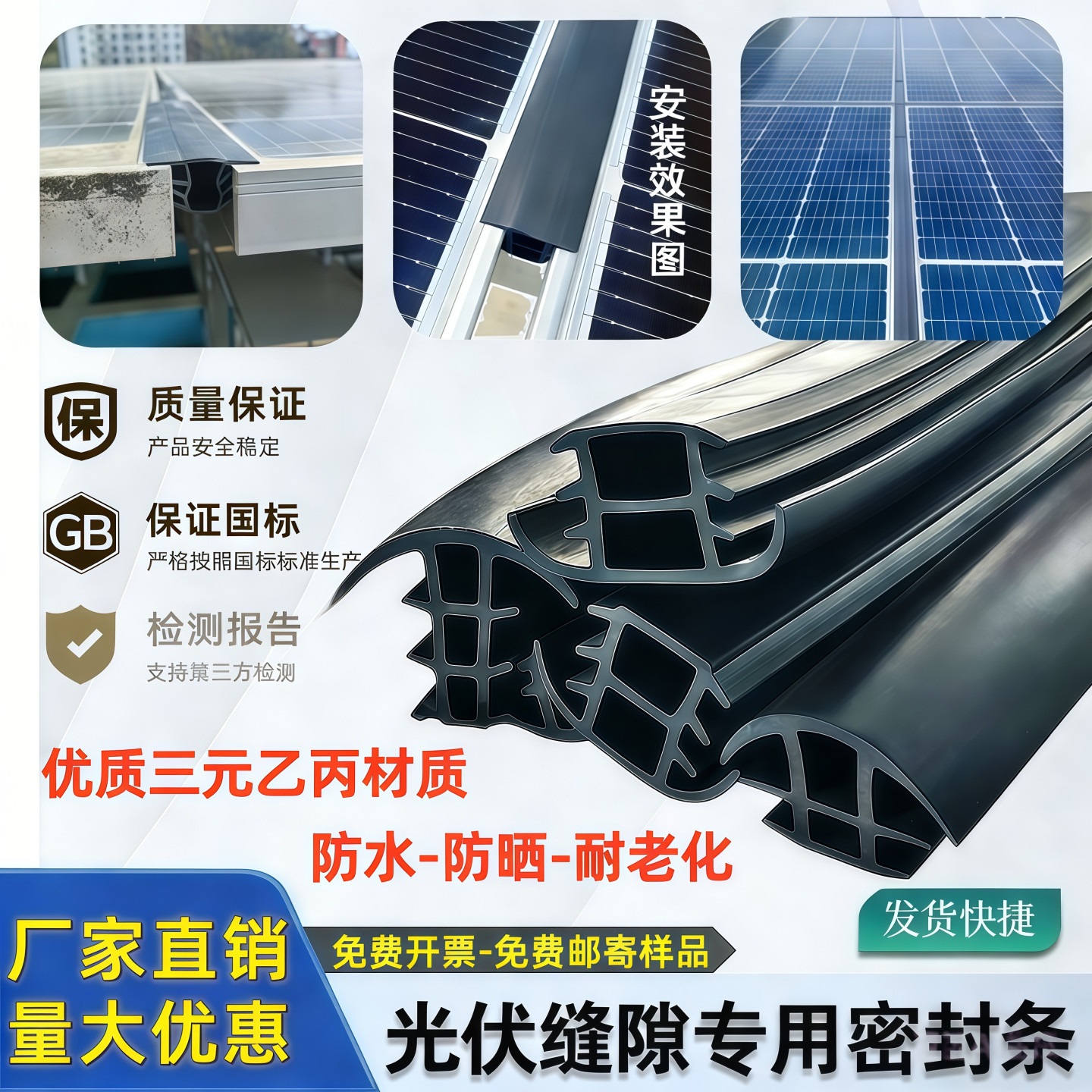 📚 太阳能光伏板密封条光伏发电板防水止漏缝隙三元乙丙T型密封胶条