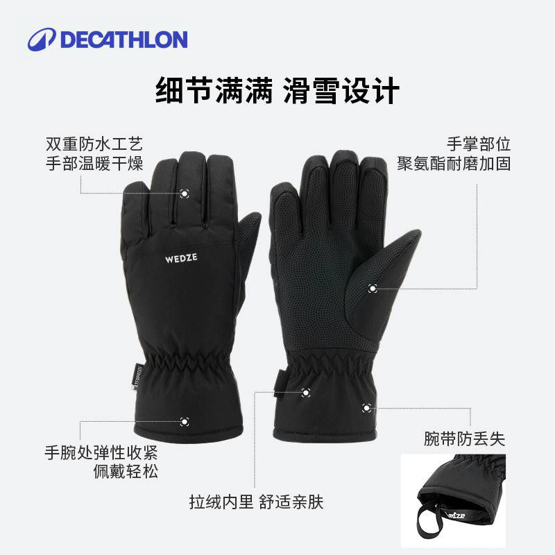 📚 迪卡侬儿童滑雪手套冬加厚加绒保暖防水滑雪男女童青少年五指KIDO