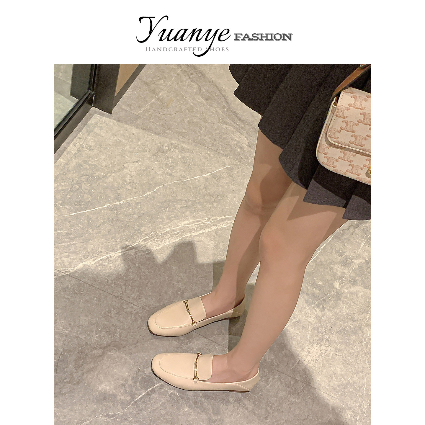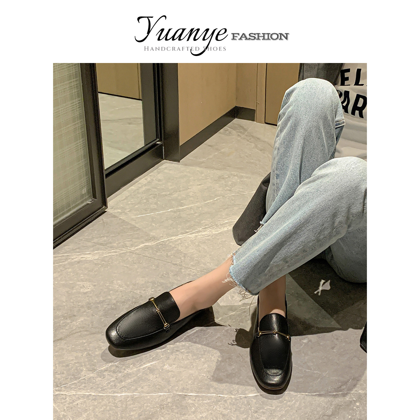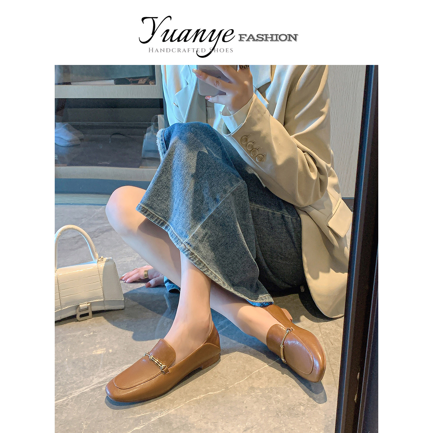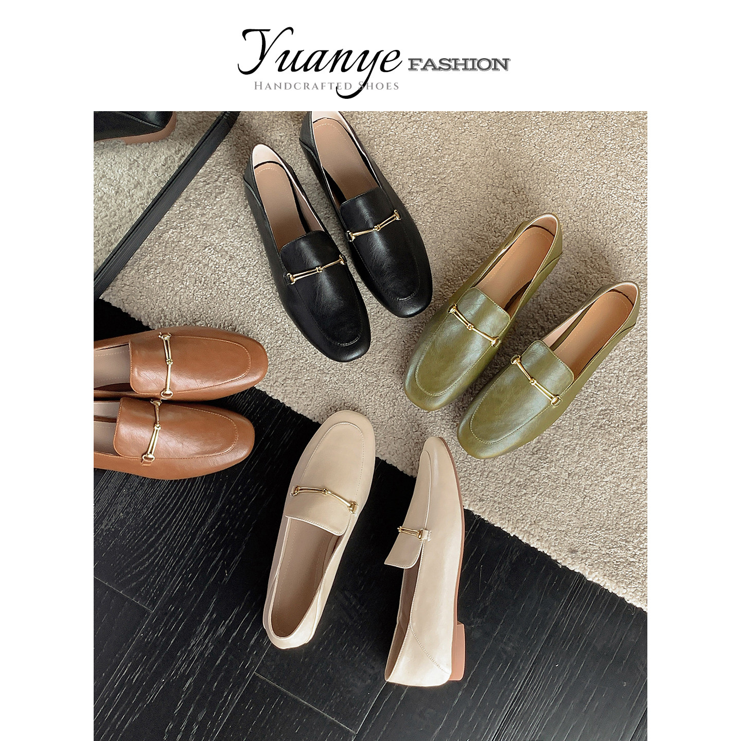 📚 原野Yuanye●朗月清风!真皮方头金属扣乐福鞋女平底学院风小皮鞋