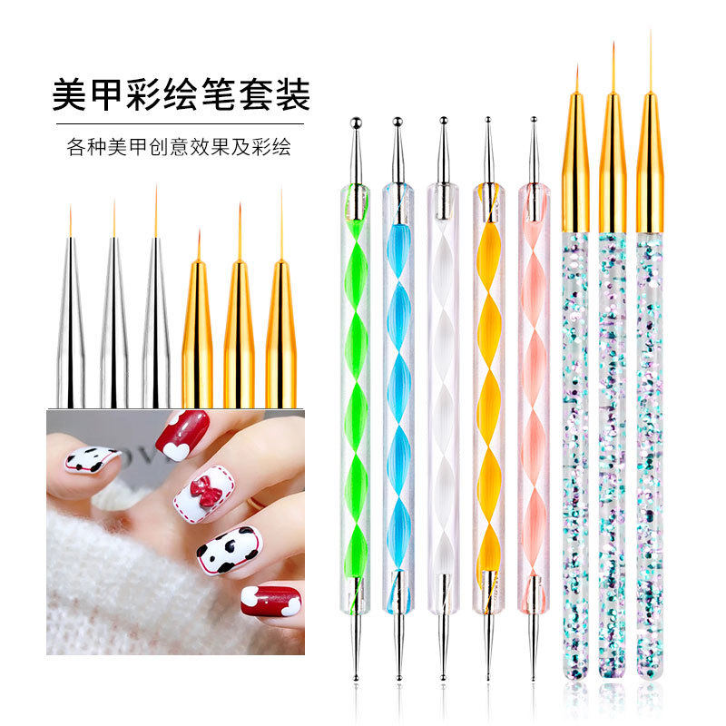 📚 美甲笔刷套装螺旋点钻笔点花笔美甲彩绘笔画线笔笔刷全套工具