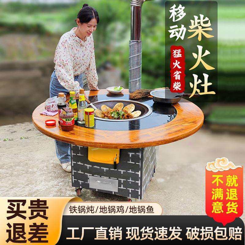 📚 柴火灶烧木柴家用柴火鸡专用灶铁锅炖灶台桌地锅灶台农村新款移动