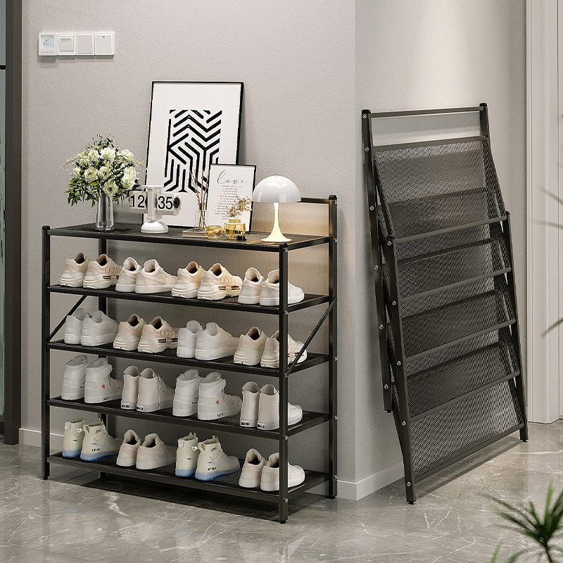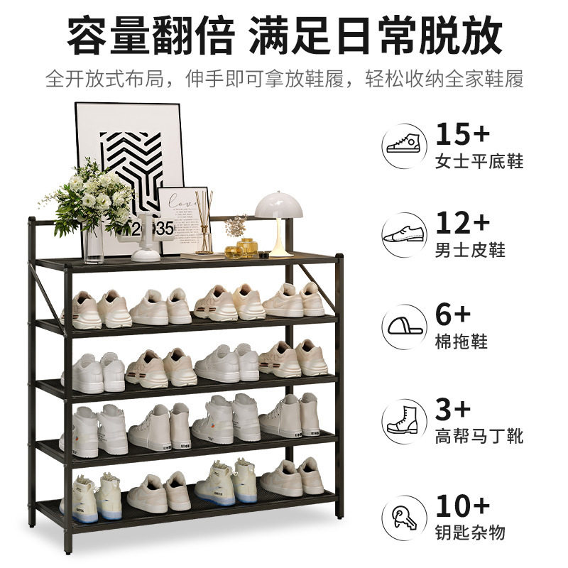 📚 折叠铁艺鞋架家用门口免安装金属简易2023新款爆款黑白系多层鞋柜