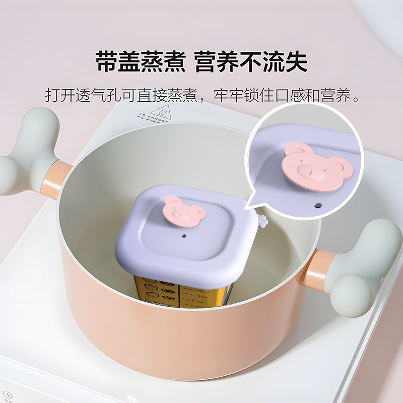 📚 宝宝辅食碗玻璃可蒸煮辅食蒸碗带盖密封小饭盒可微波炉加热保鲜盒