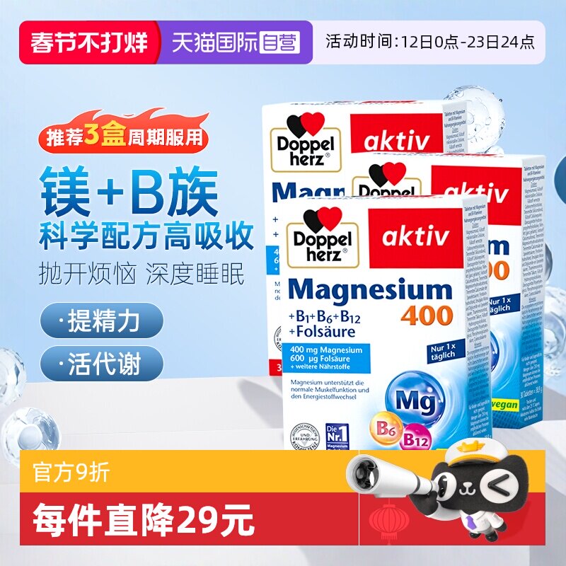 📚 【自营】3盒德国双心镁片补充剂成人b族复合维生素提代谢舒缓压力