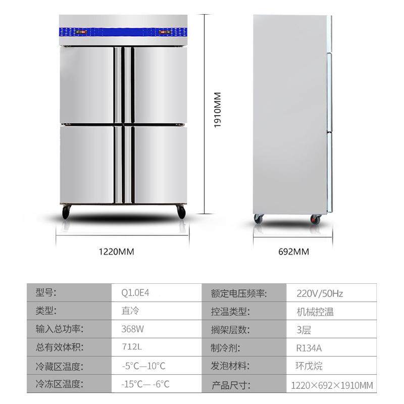 📚 Q1.0E4四门商业用冰柜双温冷藏柜冷冻保鲜柜冷柜四门冰箱