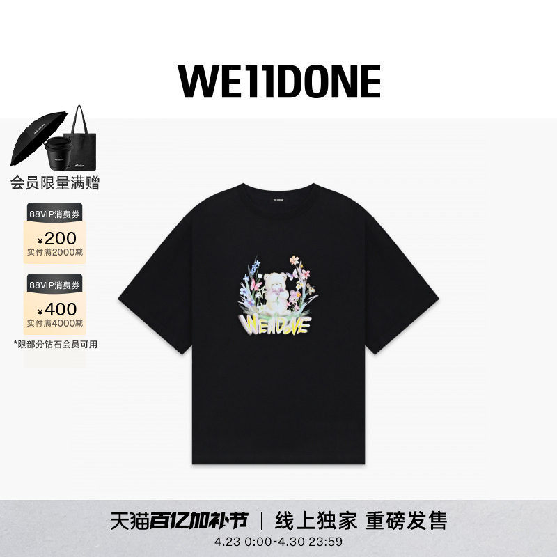 📚 【线上独家】WE11DONE26夏季新品男女同款贴纸小熊短袖T恤潮流