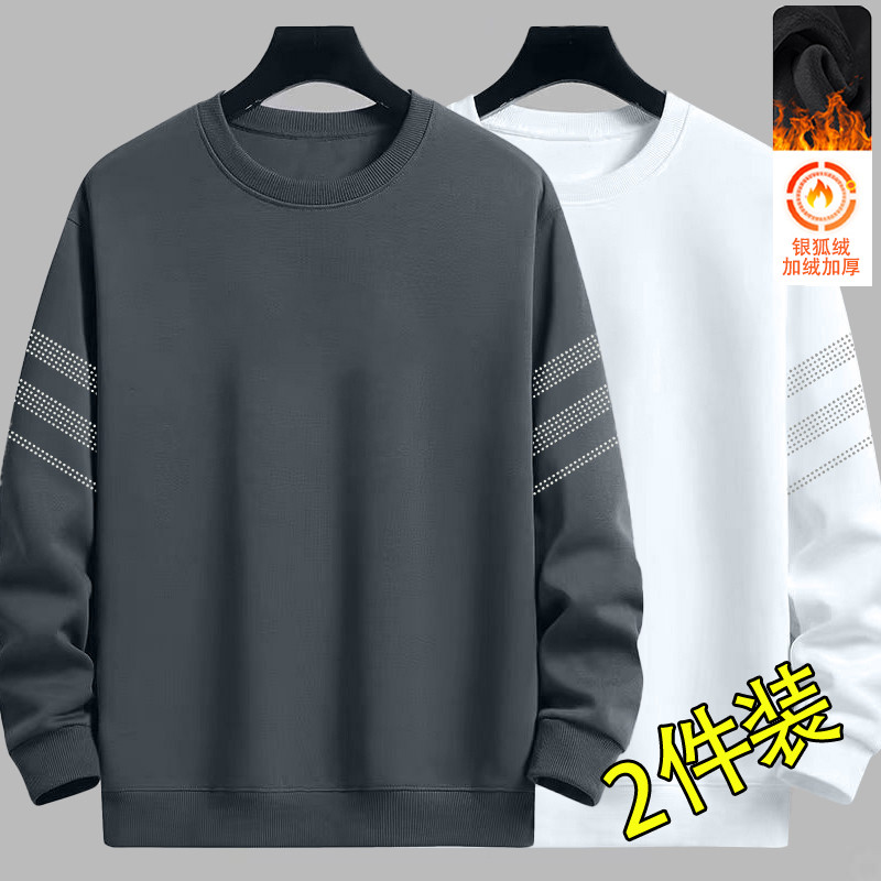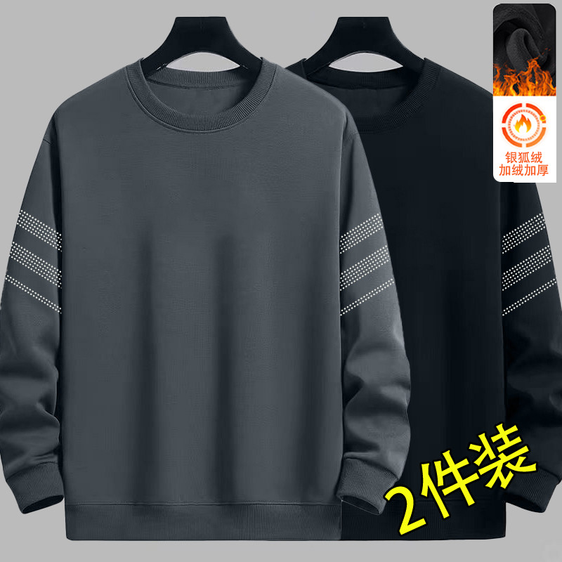 📚 男士卫衣秋冬新款圆领宽松加绒无帽套头上衣青年长袖男款外套百搭