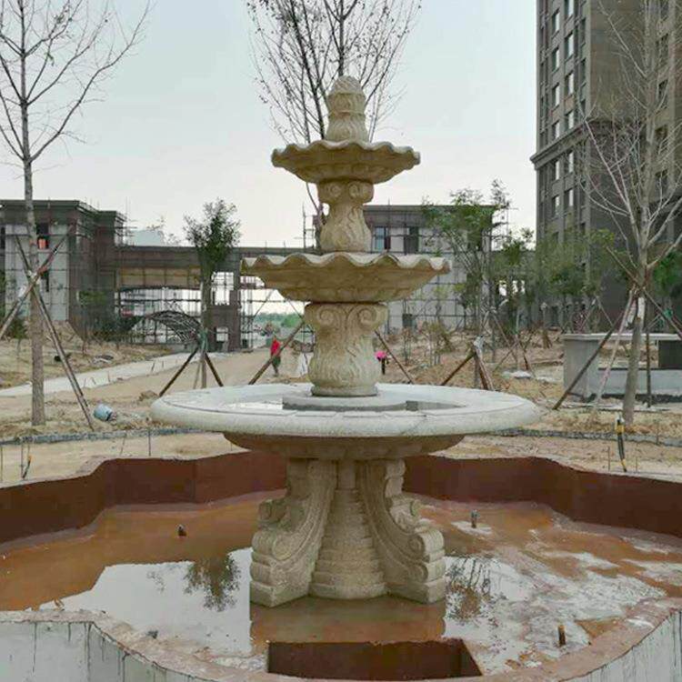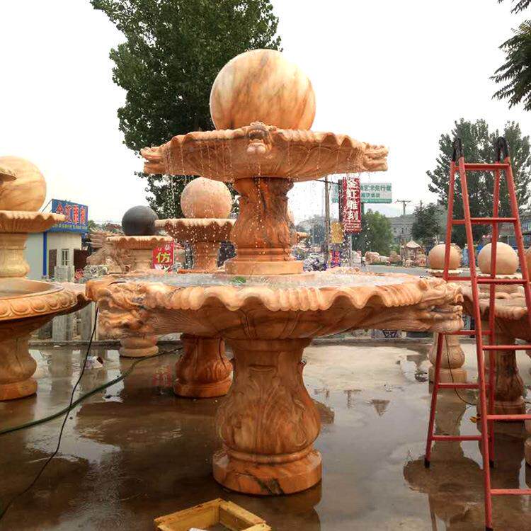 📚 岗岩雕场流石雕喷泉水喷泉石广欧式水钵黄锈石喷泉景花观雕塑