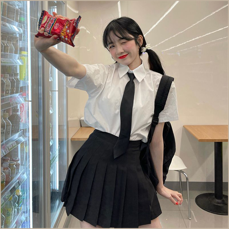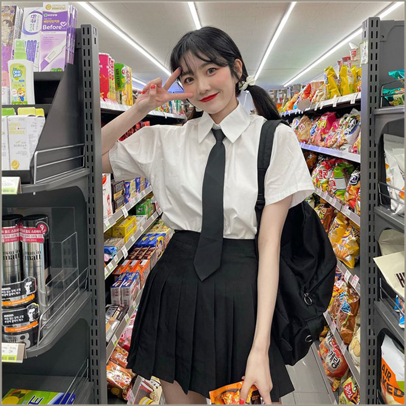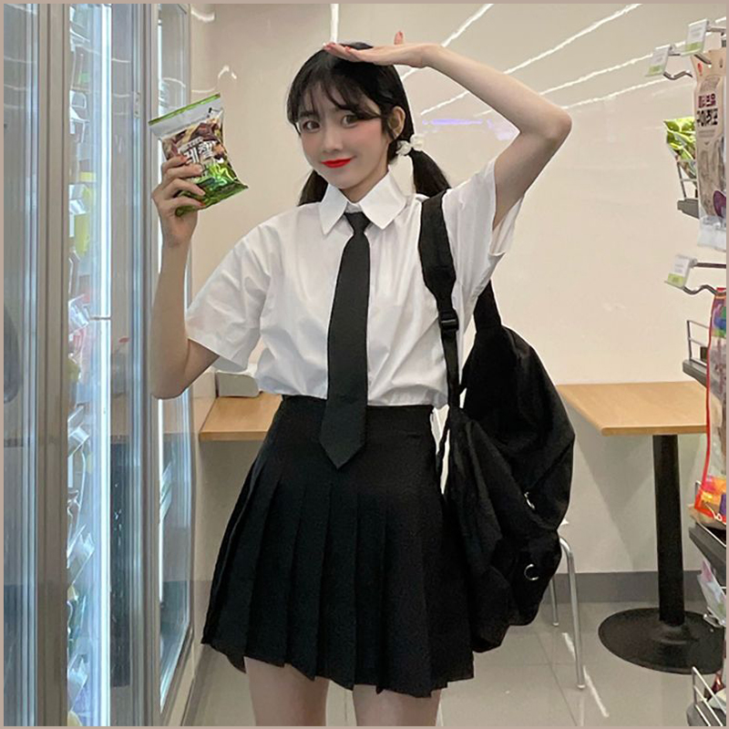📚 日系jk衬衫百褶裙套装女学生夏短袖白衬衫搭配上衣学院风班服套装