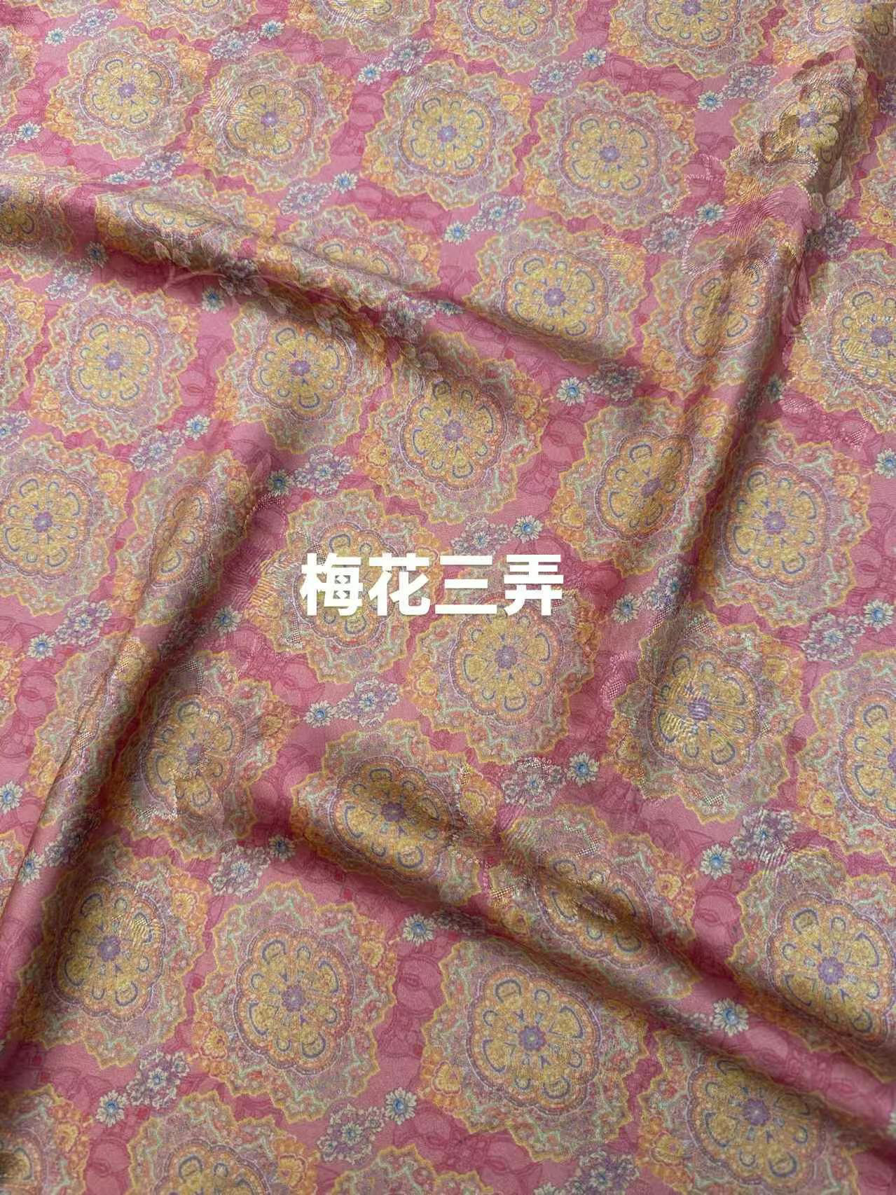 📚 新品粉色宝相花透孔花萝红云纱真丝面料气质旗袍连衣裙衬衫布料