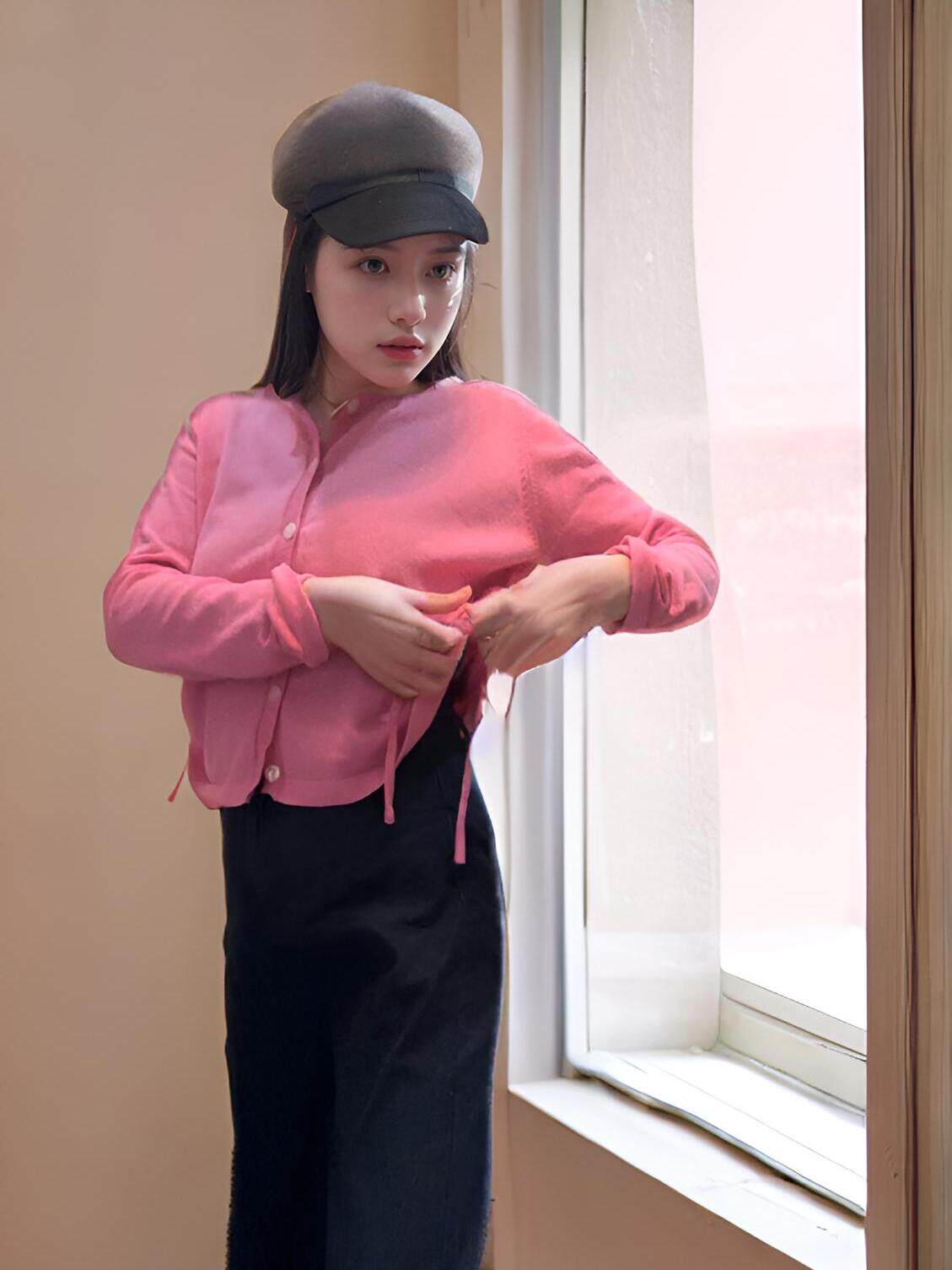 📚 徐梦洁同款针织衫显瘦显白毛衣开衫春秋长袖温柔黑色百搭外套上衣