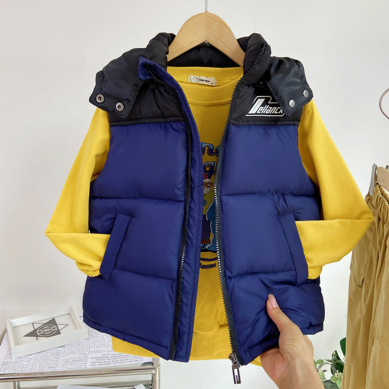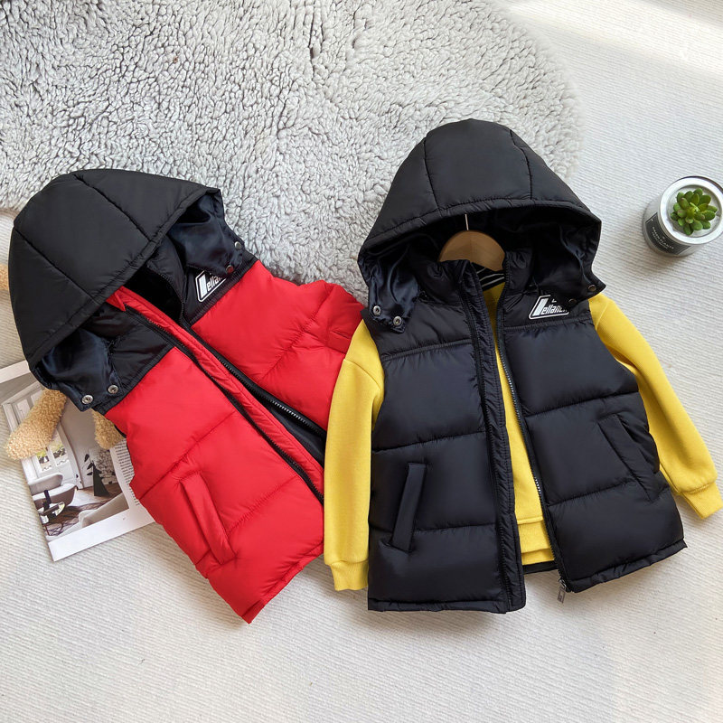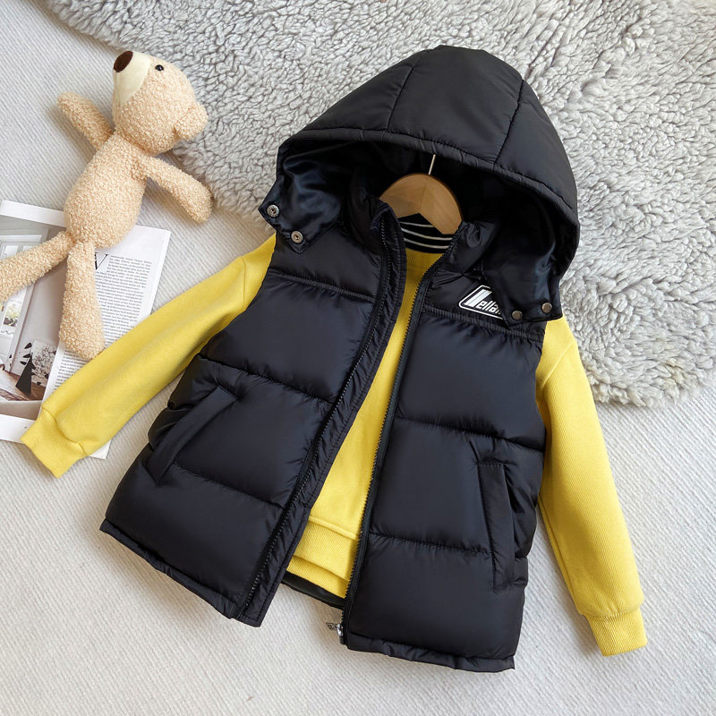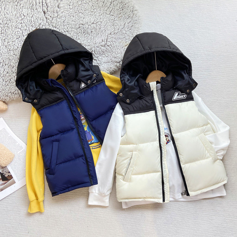 📚 秋冬新款儿童羽绒棉马甲男童连帽加厚背心女童棉服宝宝外穿坎肩