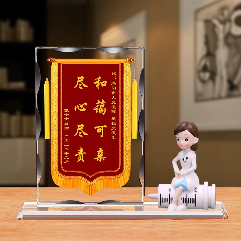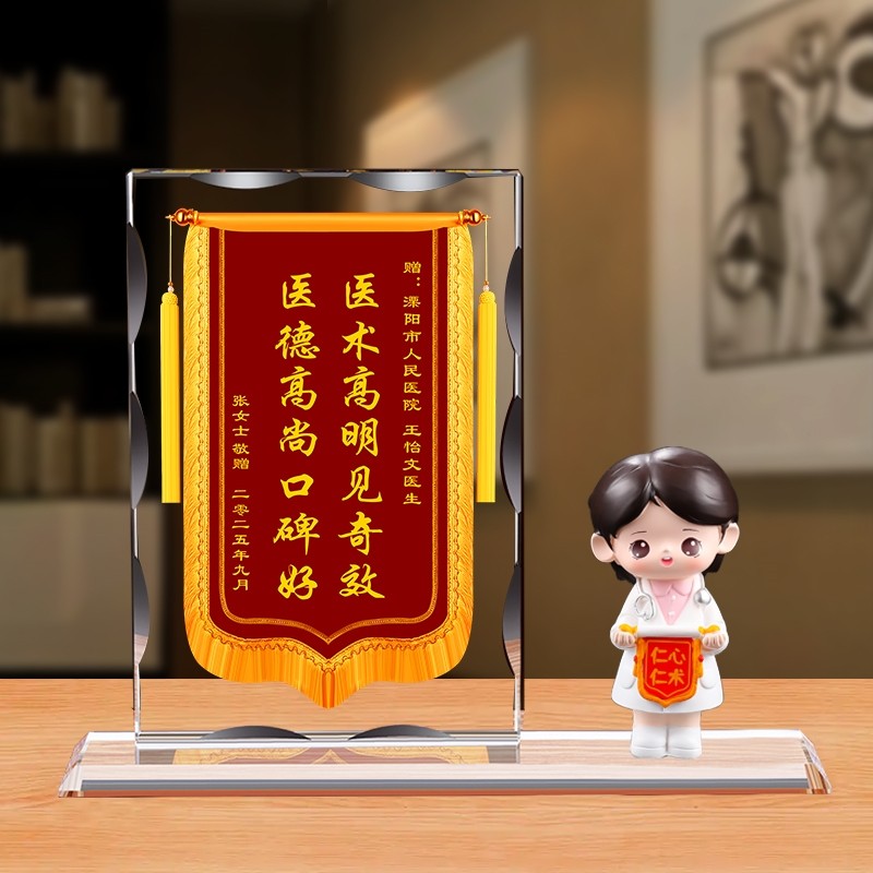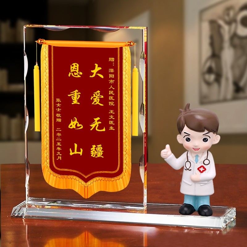 📚 水晶锦旗定制感谢医生老师退休礼物礼物护士白衣天使高档定做创意笔筒摆件礼品办公室月嫂桌面主治医师节旌旗