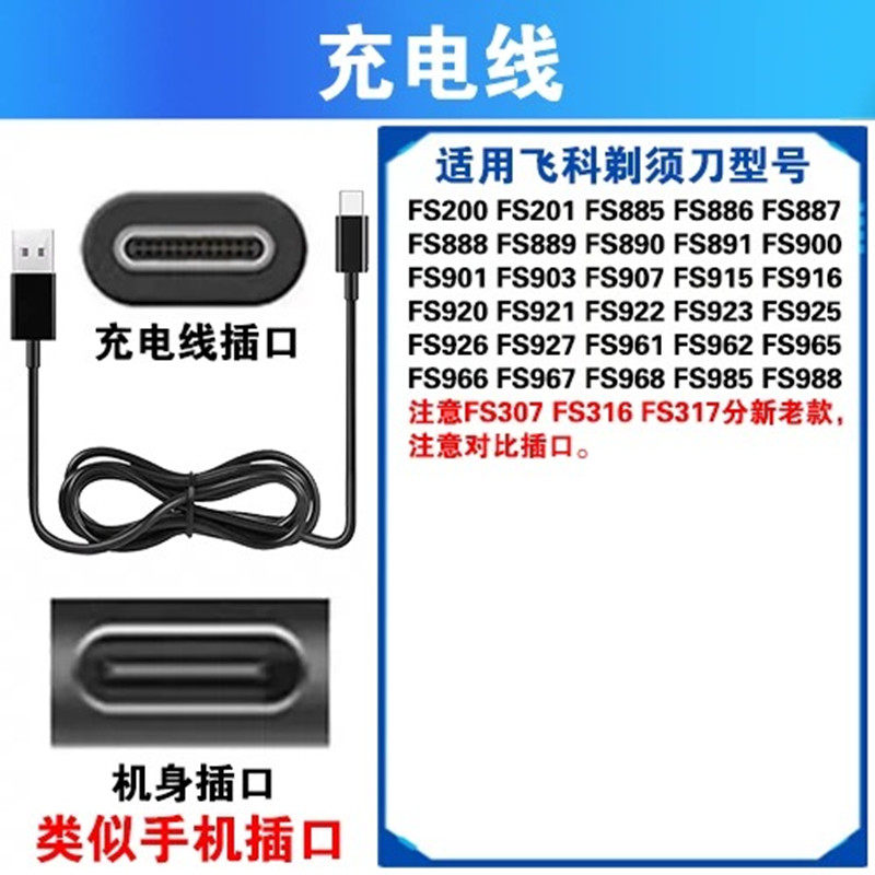 📚 适用飞科剃须刮胡刀充电源线器FS885 886 887FS888 889 FS890 891