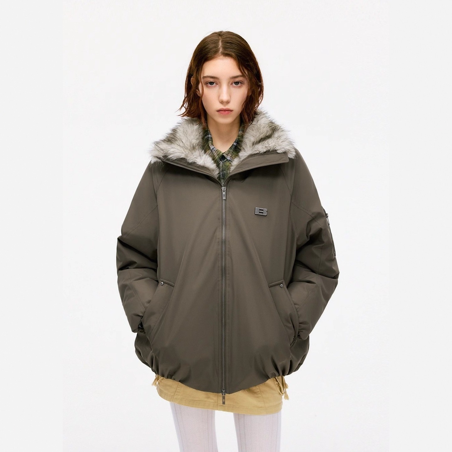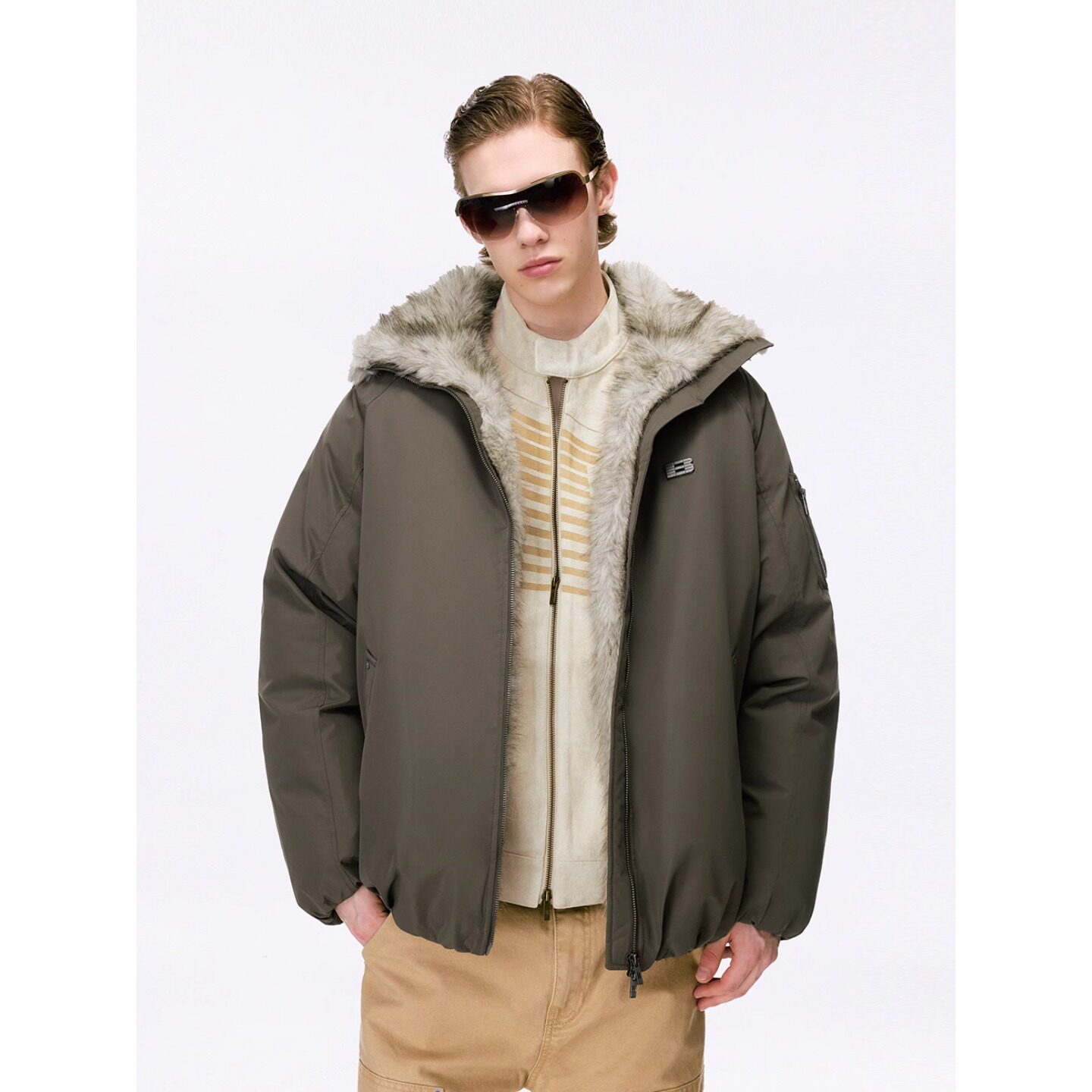 📚 【蔡徐坤同款】BONELESS拼接毛边立领派克棉服宽松冬季保暖棉衣