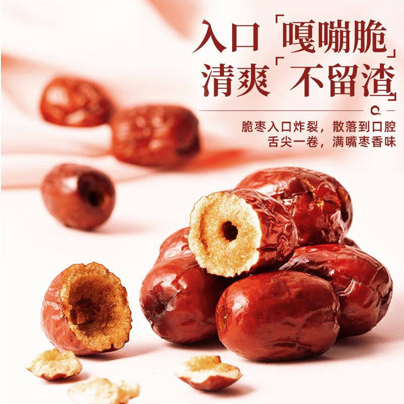 📚 无核香酥脆枣真空包装去核红枣嘎嘣脆办公休闲解馋零食空心脆枣