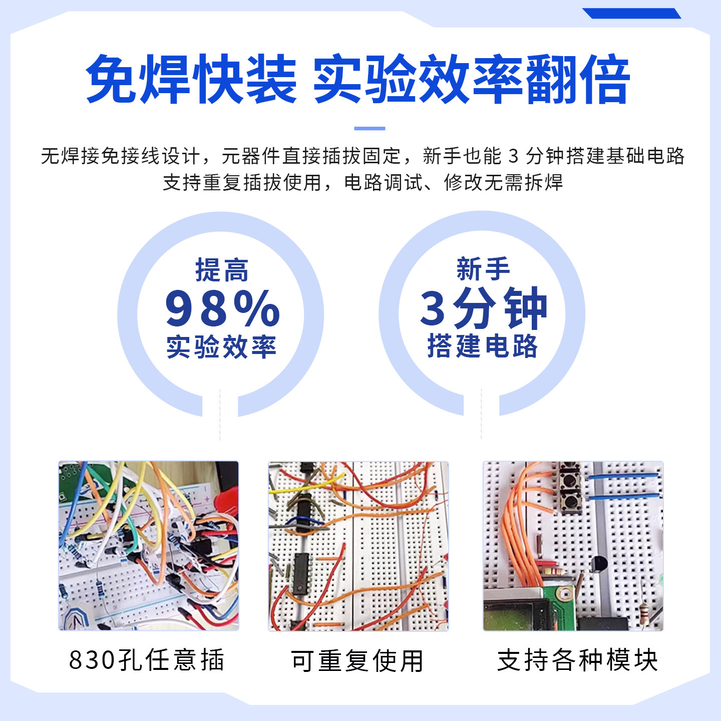 📚 400/830孔大面包板杜邦线跳线MB-102电子diy电路板面包板实验套件