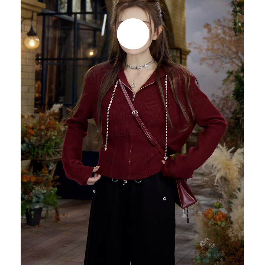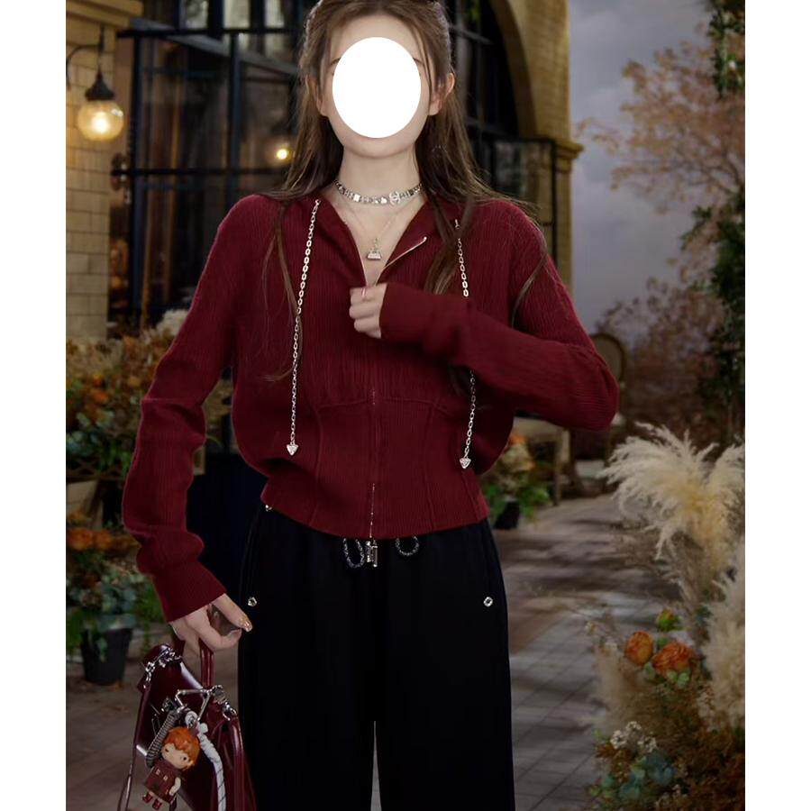 📚 吞吞穿搭日记【树莓味】精致小红帽安可拉红连帽针织衫红色毛衣女