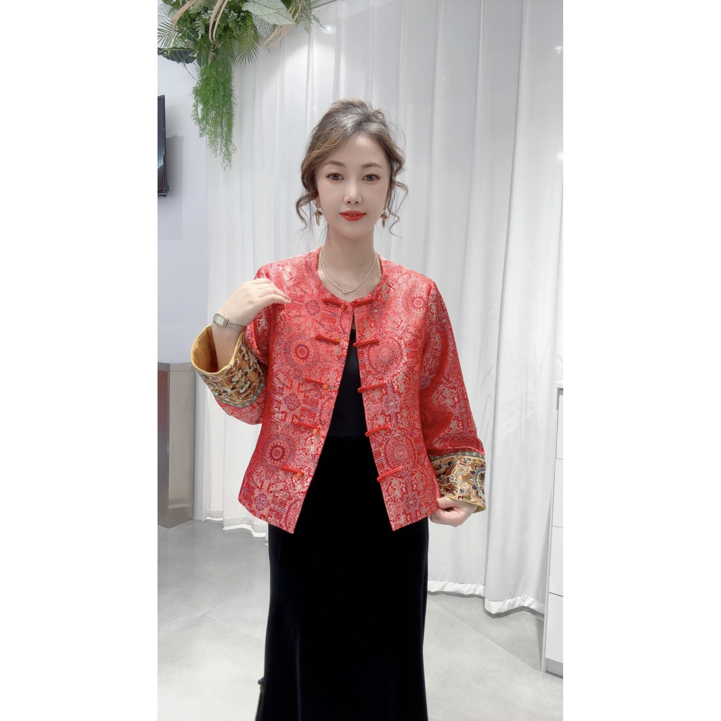 49¥ CZ225 no0mUlmRlPo¥ https://m.tb.cn/h.7FynFlO 非遗真丝织锦缎宋锦提花上衣女装2026春季新款红色新中式高端外套 --------------------- 【原售价】199元 【现售价】199元。