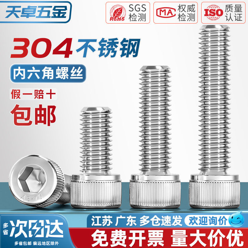 📚 304不锈钢内六角螺丝钉杯头螺栓圆柱头加长M1.6M2M3M4M5M6M8M10mm
