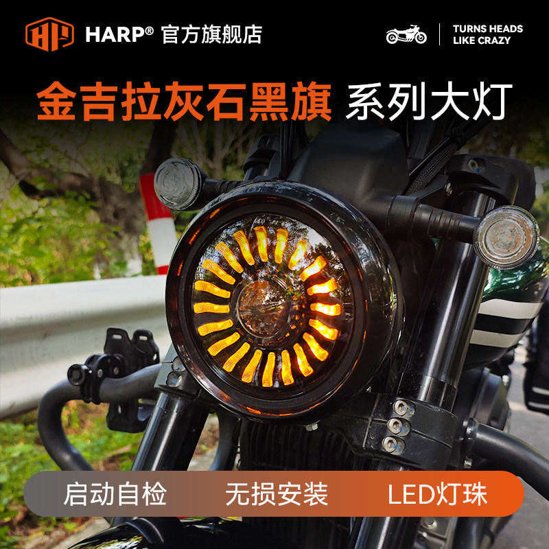 📚 奔达灰石250黑旗500/950金吉拉450无损改装大灯摩托车复古圆灯