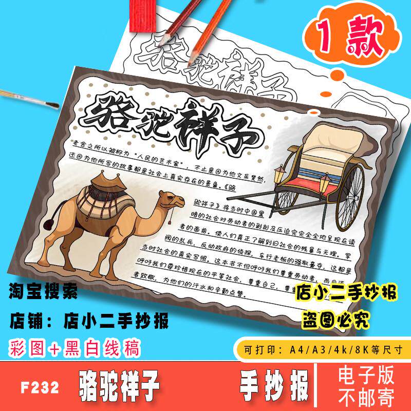 📚 骆驼祥子手抄报电子版小学生推荐阅读课外名著好书推荐老舍必读书