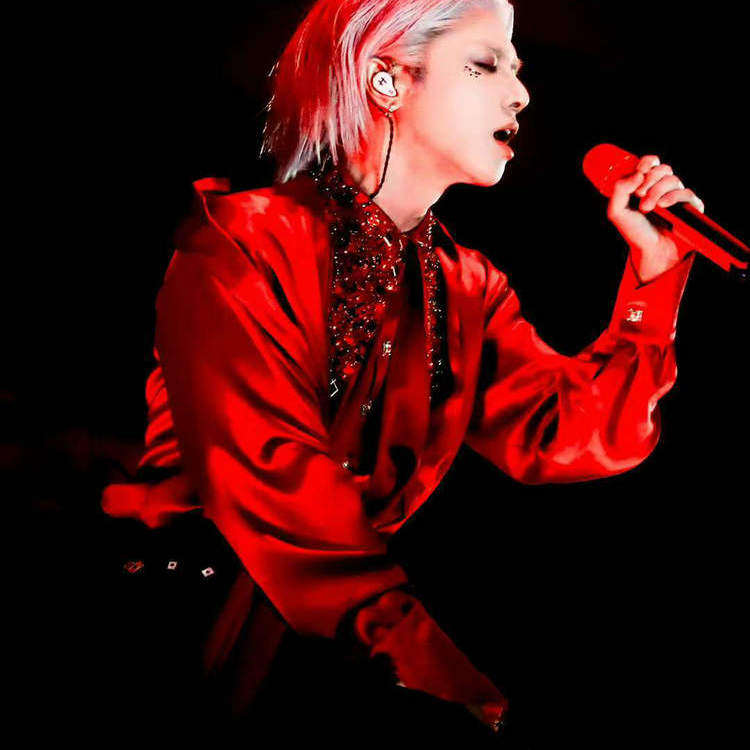 📚 华晨宇演唱会同款红衬衫25年新款重工镶砖大尖领长袖劲爆炸街衬衣