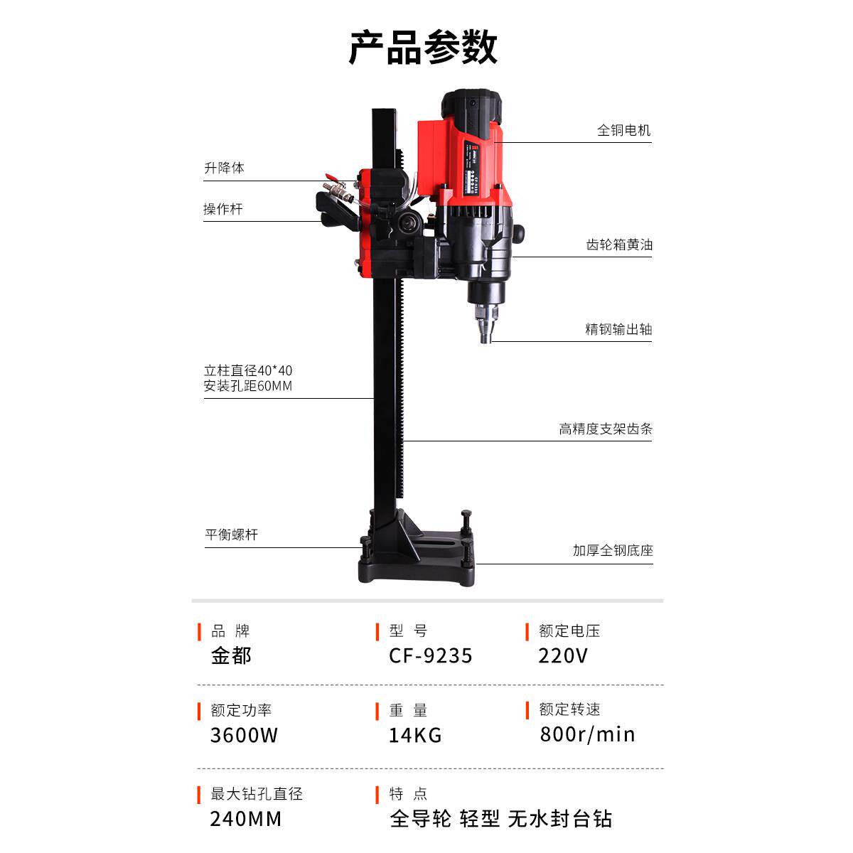 📚 金都9235台式钻床金刚石钻孔设备台式钻孔机轻型全导轮无水封无铜