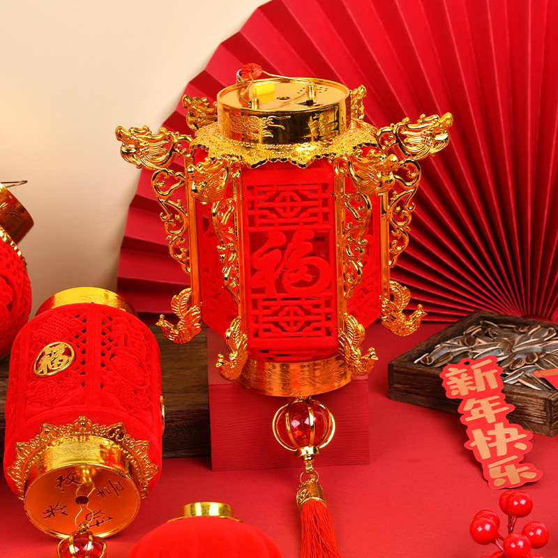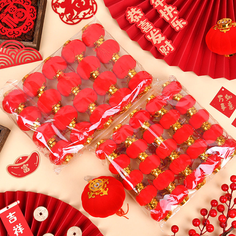 📚 2024新款植绒灯光小红灯笼挂饰新年春节元P旦中秋装饰挂件中国风