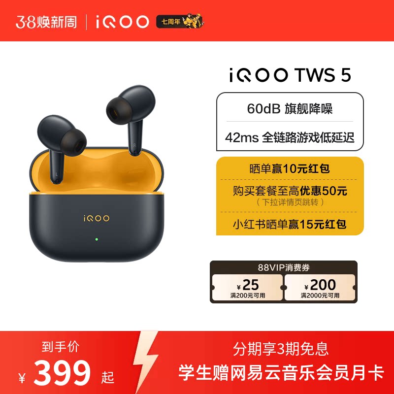 57¥ CZ001 VRa2Utb66tV¥ https://m.tb.cn/h.iXnJHjS 【淘金币抵大额】vivo iQOO TWS 5蓝牙降噪耳机电竞新品15Ultra --------------------- 【原售价】399元 【优惠券】50元 【券后价】349元。