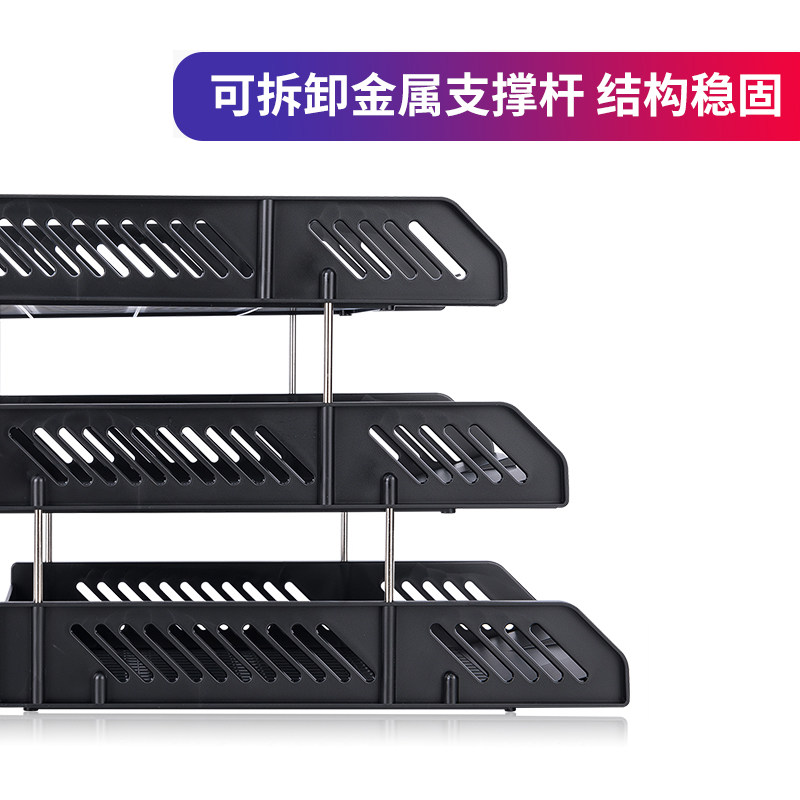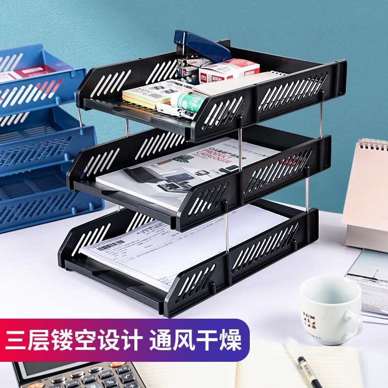 📚 得力三层文件座塑料横式文件框档案整理资料收纳架置物文件筐多层黑色文件架文件夹收纳盒办公用品批发