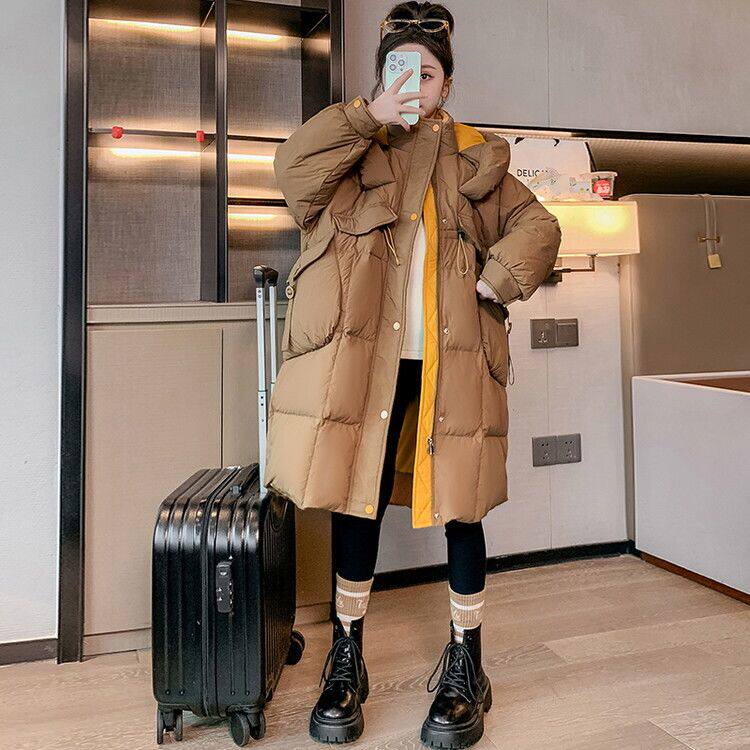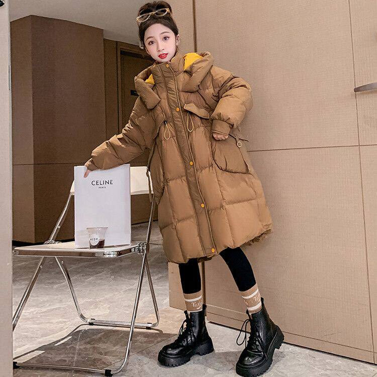 📚 2025冬季新款中大童咖色羽绒服儿童宽松洋气连帽白鸭绒外套女童装