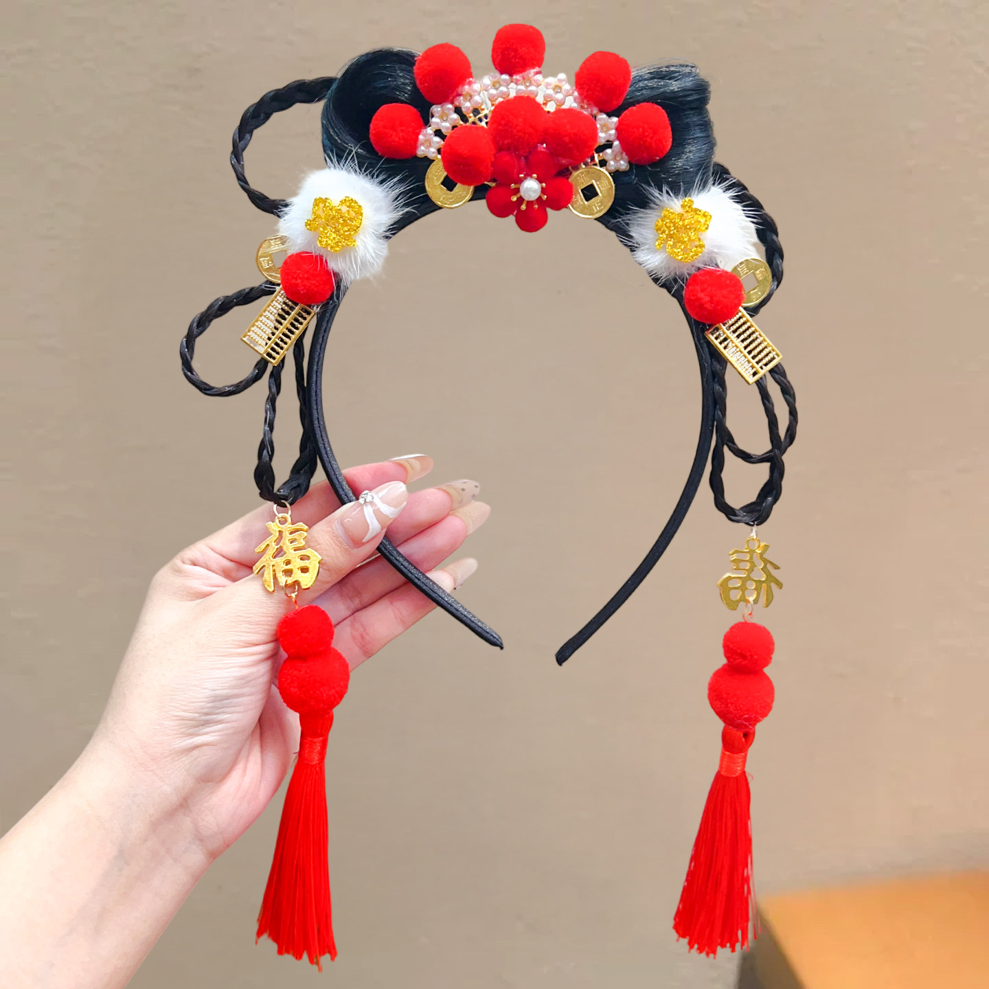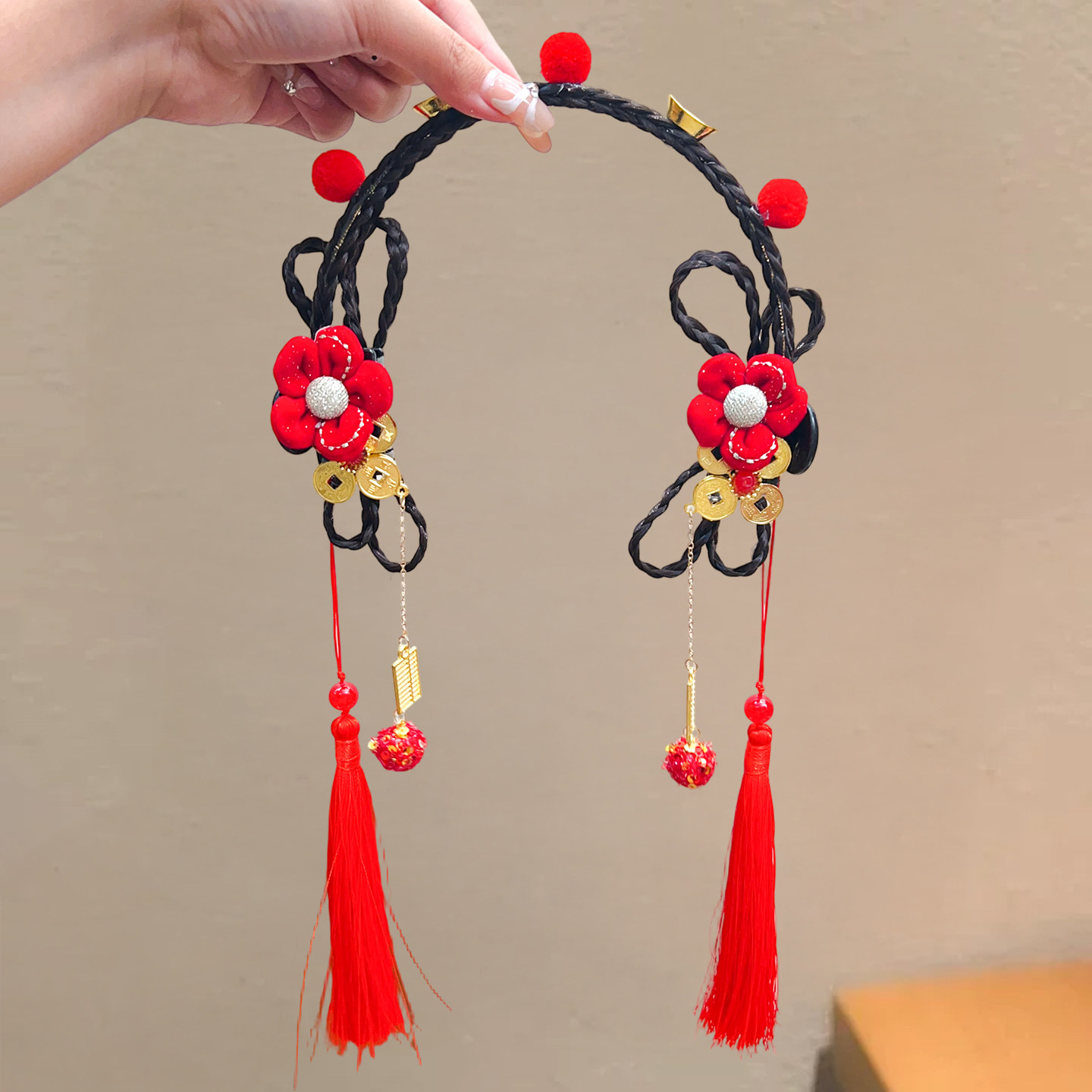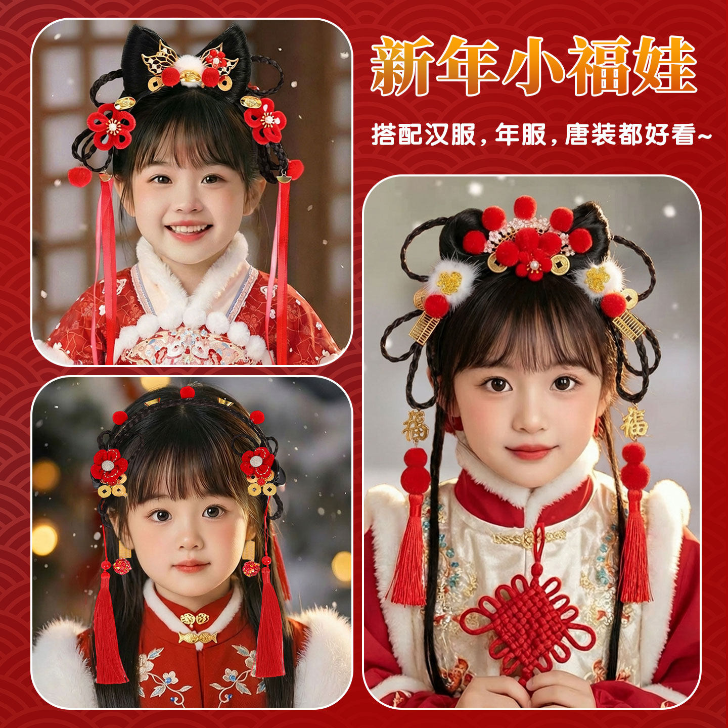 📚 儿童假发发箍女童古风发饰中国风蝴蝶结头箍红色流苏汉服头饰造型