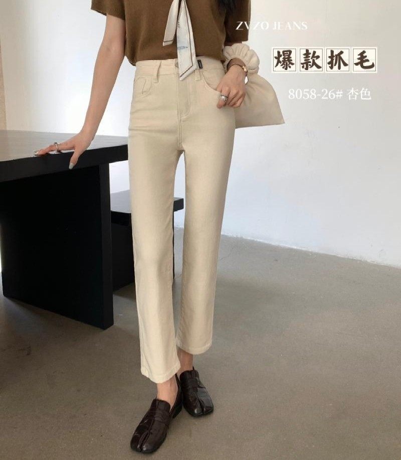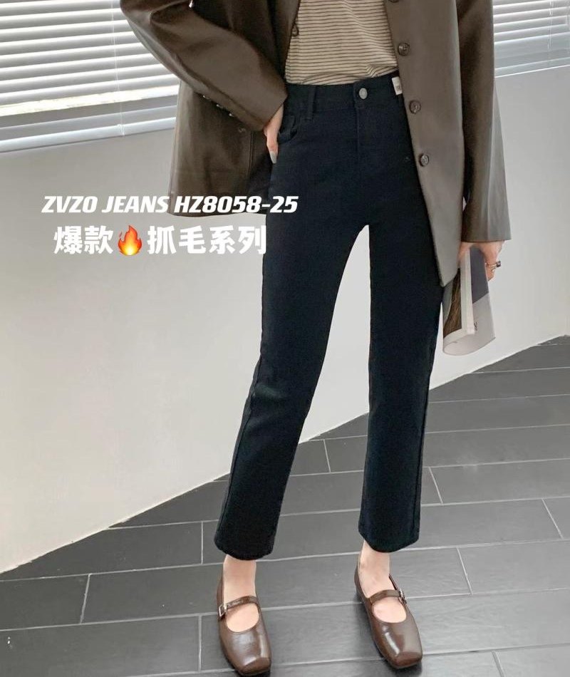 📚 ZVZO8058设计感气质万向弹抓毛烟管牛仔裤女高腰加绒直筒九分裤子