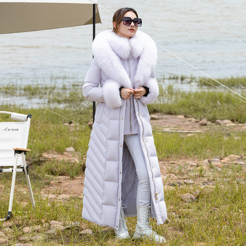 📚 2025年冬季新款真毛领白鸭绒羽绒服女长款过膝到脚踝修身加厚外套