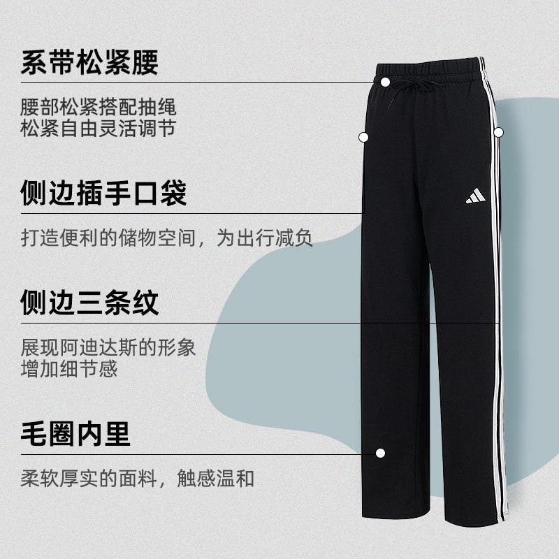 📚 阿迪达斯长裤女裤2026新款三条纹复古休闲裤毛圈直筒运动裤JW7182