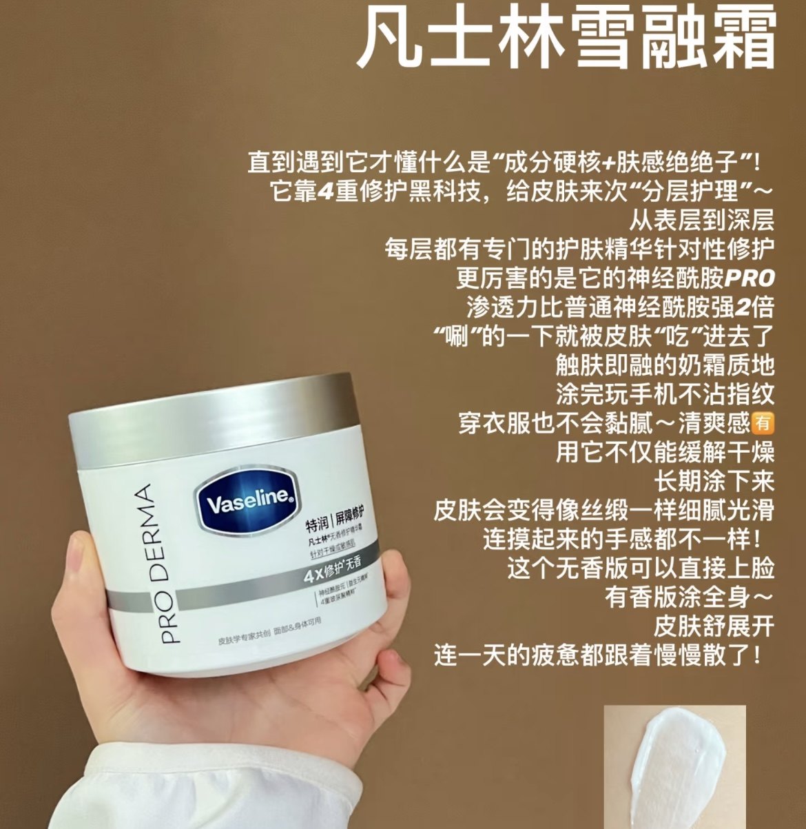 📚 低调有实力!凡士林特润修护雪融霜屏障修护保湿身体乳面霜大白罐